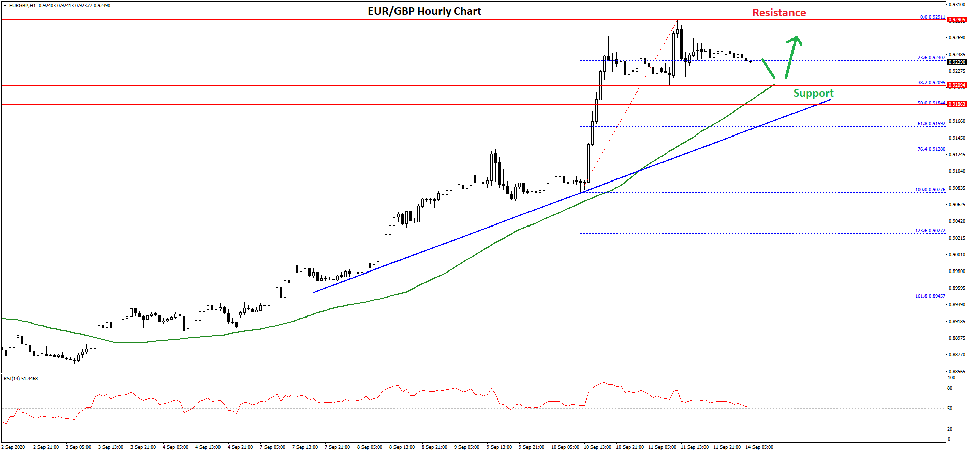 The pair gained pace above the key 0.9200 resistance and it settled above the 50 hourly simple moving average. Finally, the pair traded as high as 0.9291 and it is currently correcting lower.