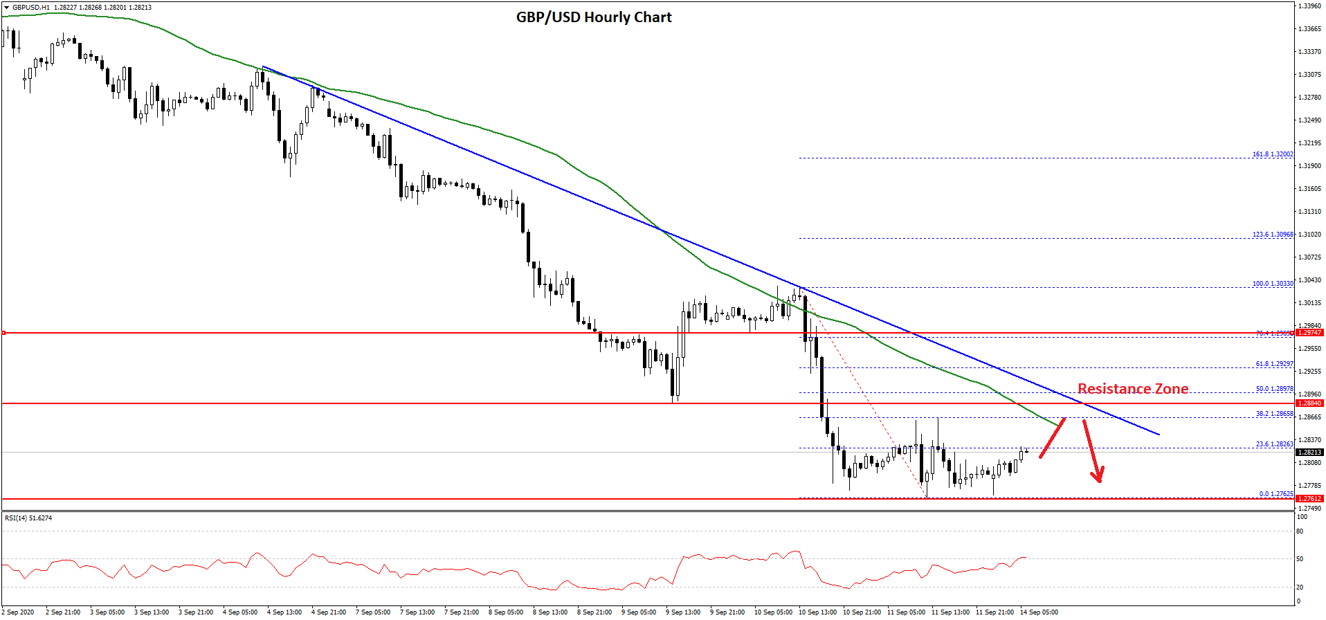 Therefore, the pair must break the trend line resistance and then gain pace above the 1.2900 level to start a recovery wave. The next key hurdles are near 1.2980 and 1.3000.