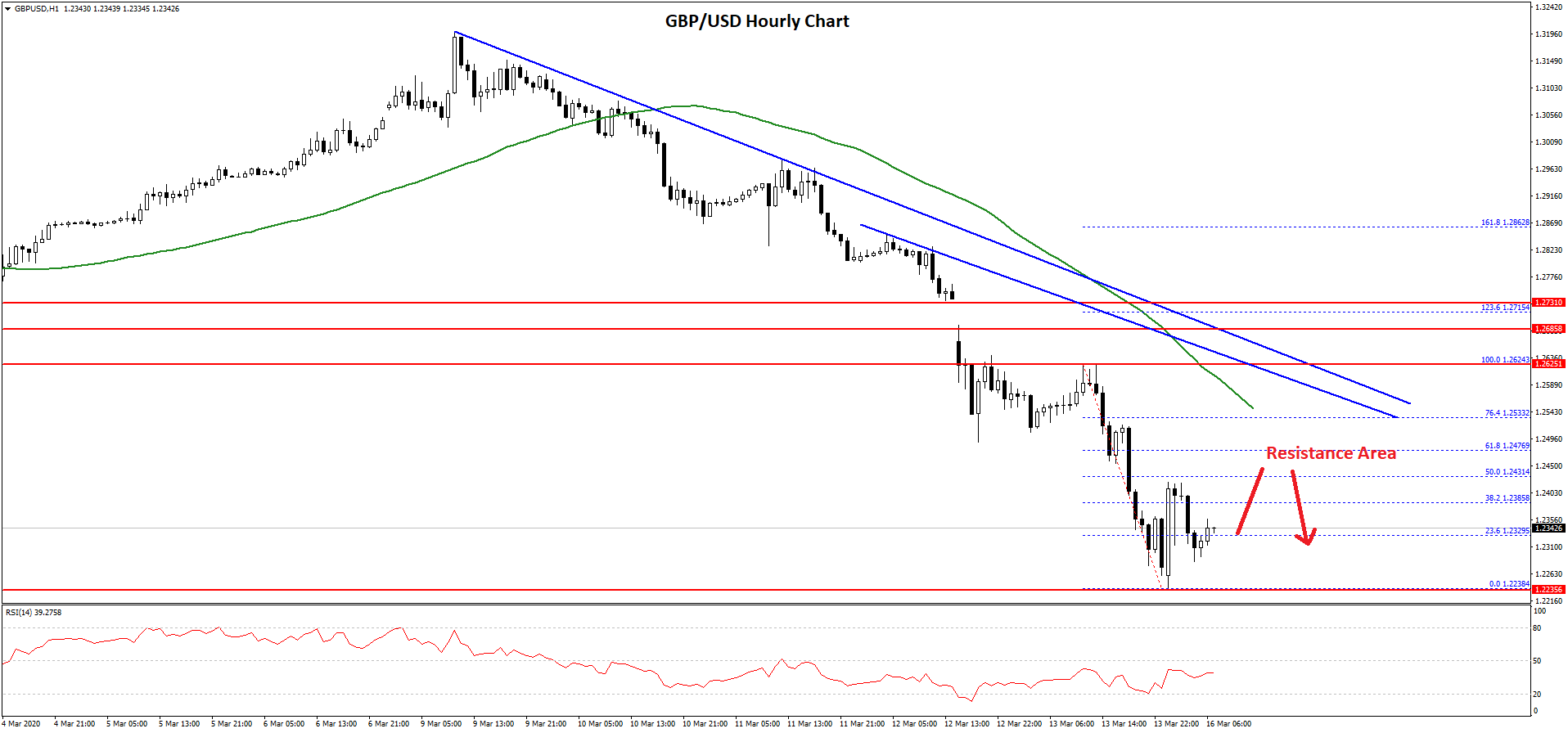 The decline was such that the pair even broke the 1.2500 support area and settled well below the 50 hourly simple moving average. Finally, the pair declined below the 1.2400 area and traded as low as 1.2238 on FXOpen.