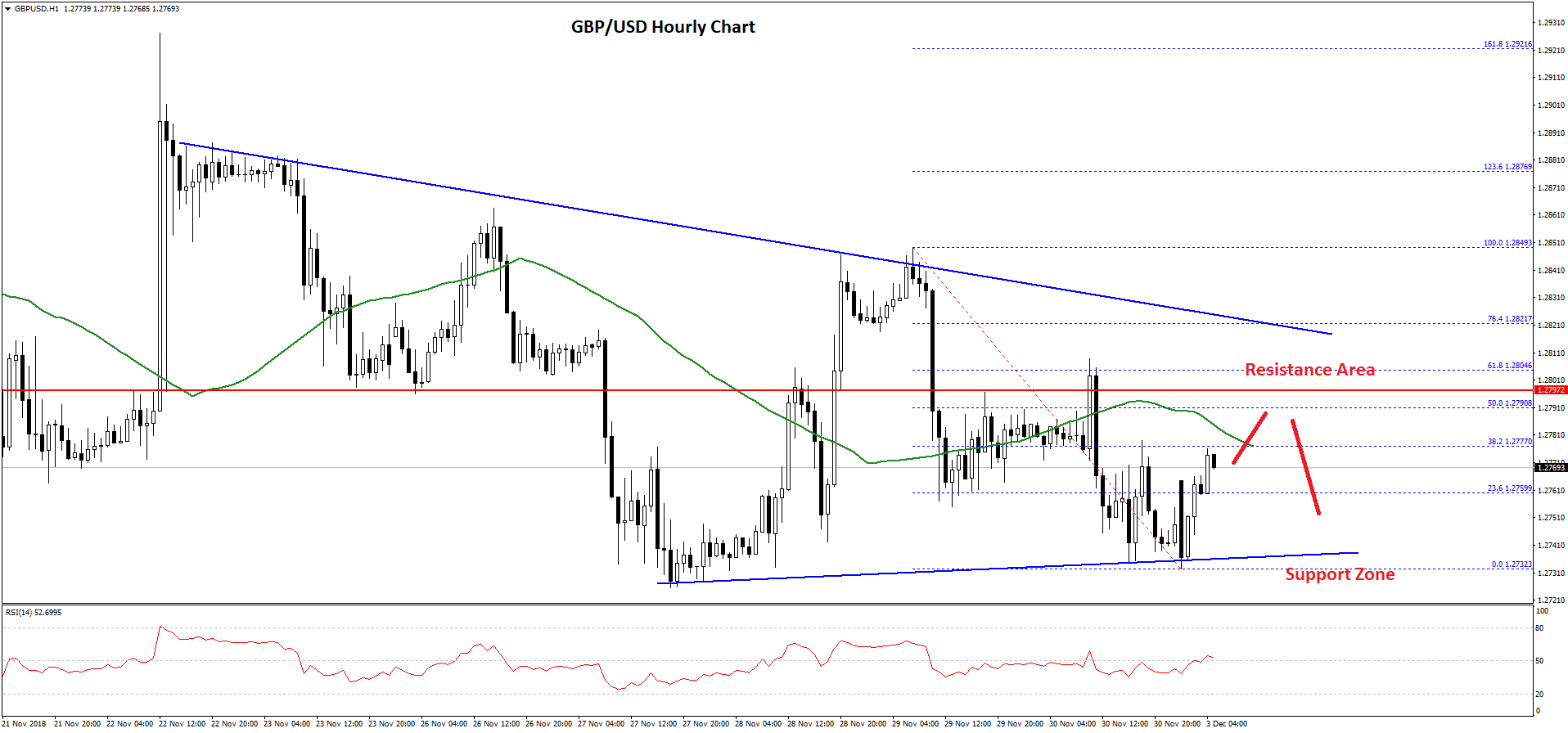 The recent swing low was 1.2732 and later the pair moved above the 23.6% Fib retracement level of the last slide from the 1.2849 high to 1.2732 low. However, there are many hurdles on the upside near the 1.2775 level and the 50 hourly SMA.