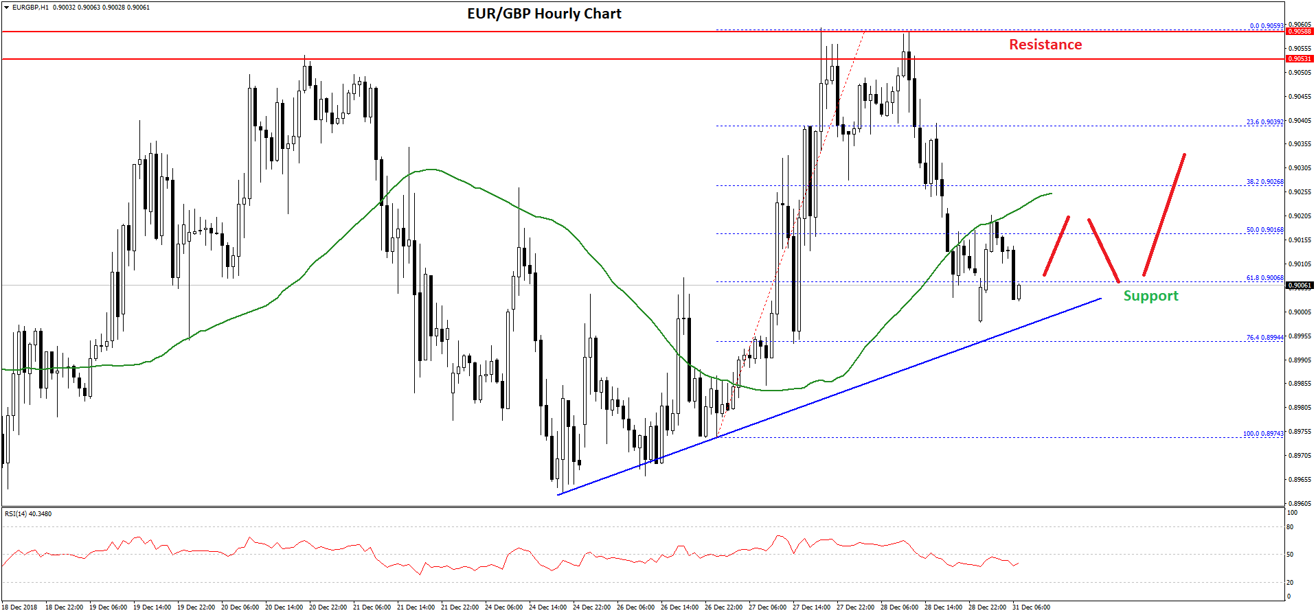 The Euro gained bullish momentum recently and cleared the 0.9000 and 0.9030 resistance levels against the British Pound. The EUR/GBP pair even broke the 0.9050 resistance area and traded towards the 0.9065 resistance.