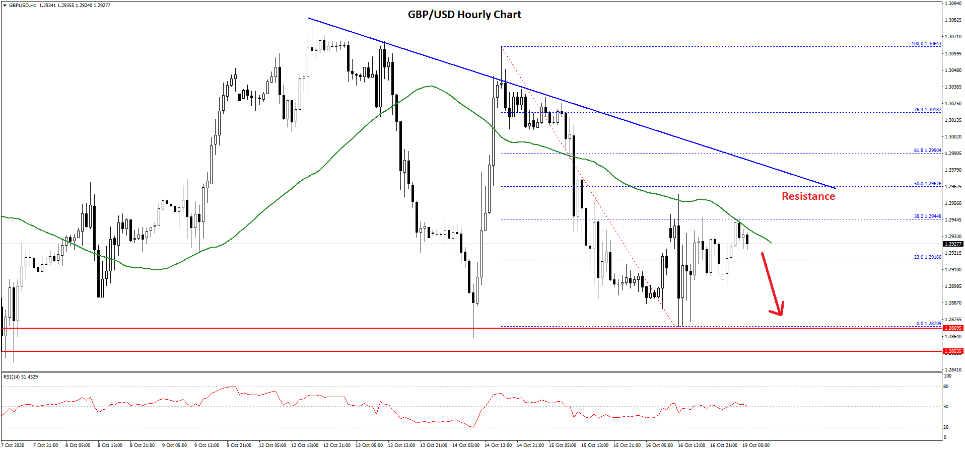 Conversely, the pair might continue to move down below the 1.2900 support. The next key support is near the 1.2870 level, below which it could slide sharply towards the 1.2800 level in the coming sessions.