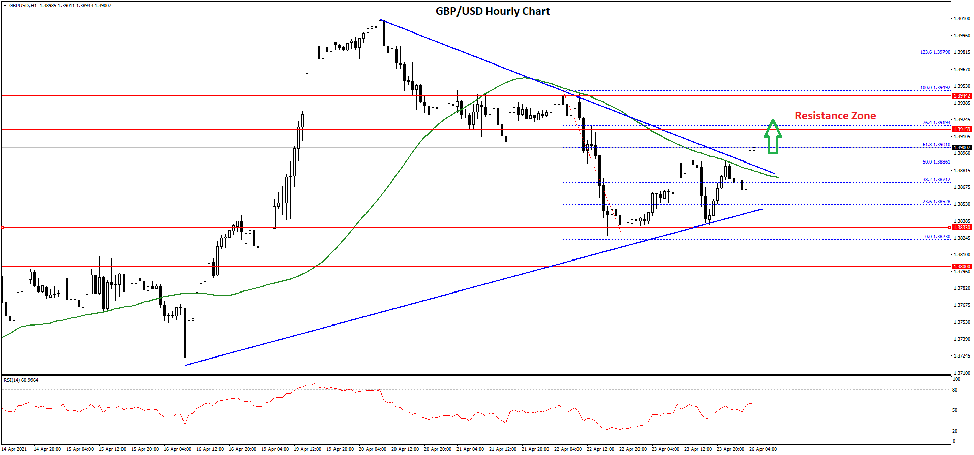 - The British Pound tested the 1.3825 support zone and it is now recovering against the US Dollar.