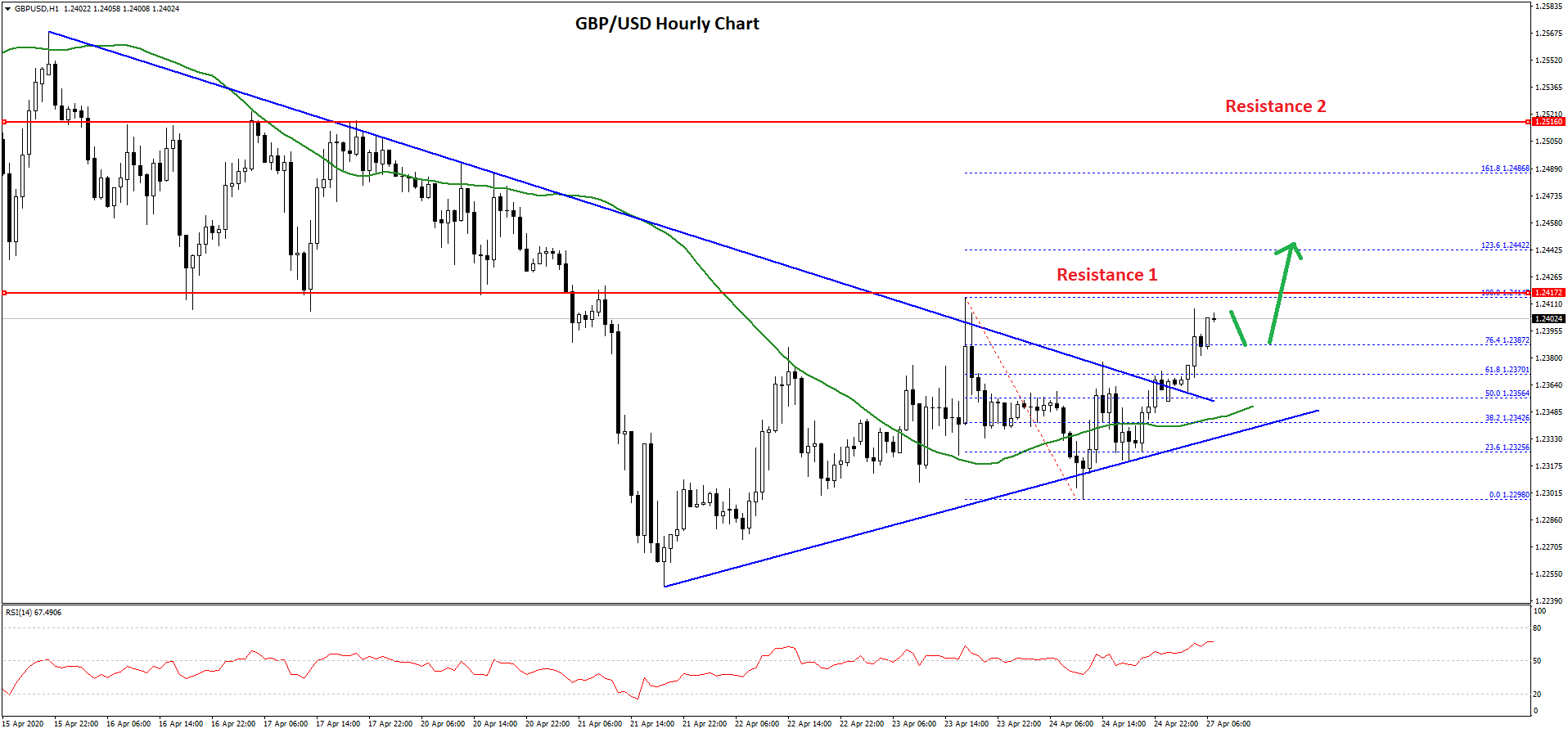 Any further gains could lead the pair towards the 1.2500 and 1.2520 levels. Conversely, the pair may fail to surpass the 1.2425 resistance and it might decline back towards the 1.2350 support area or the 50 hourly SMA.