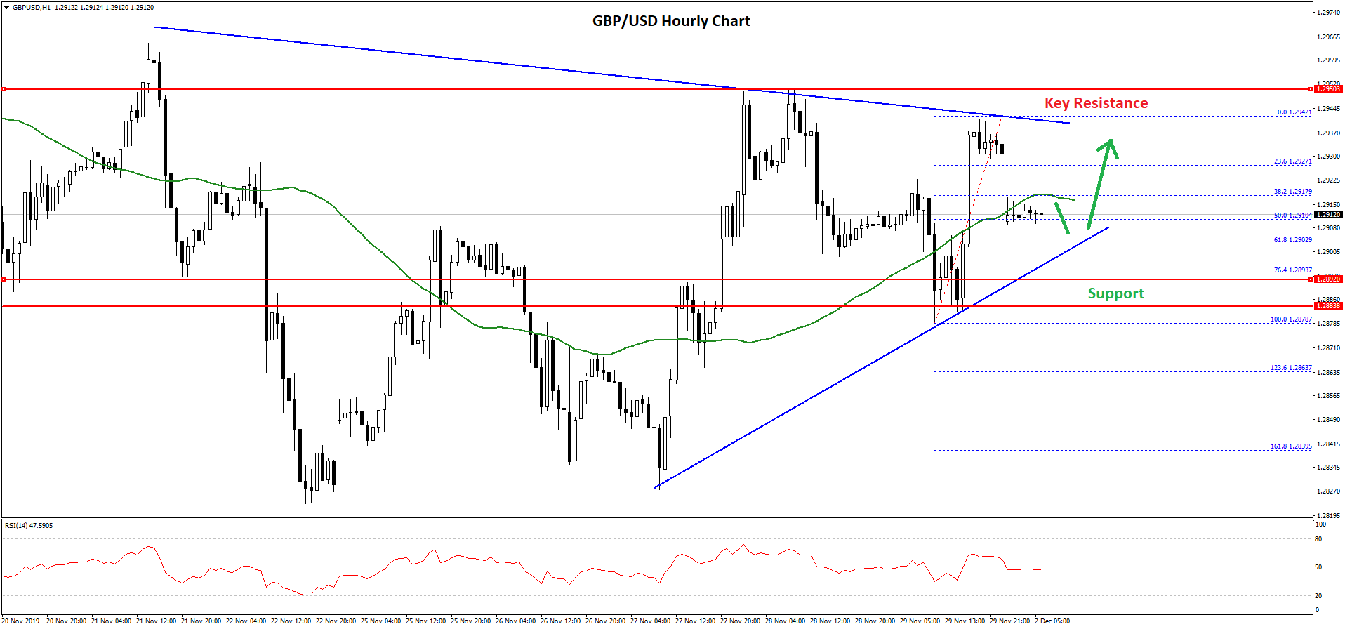 The pair gained pace above the 1.2900 resistance and the 50 hourly simple moving average. Finally, the pair climbed above the 1.2920 resistance level, traded close to the 1.2960 resistance area.