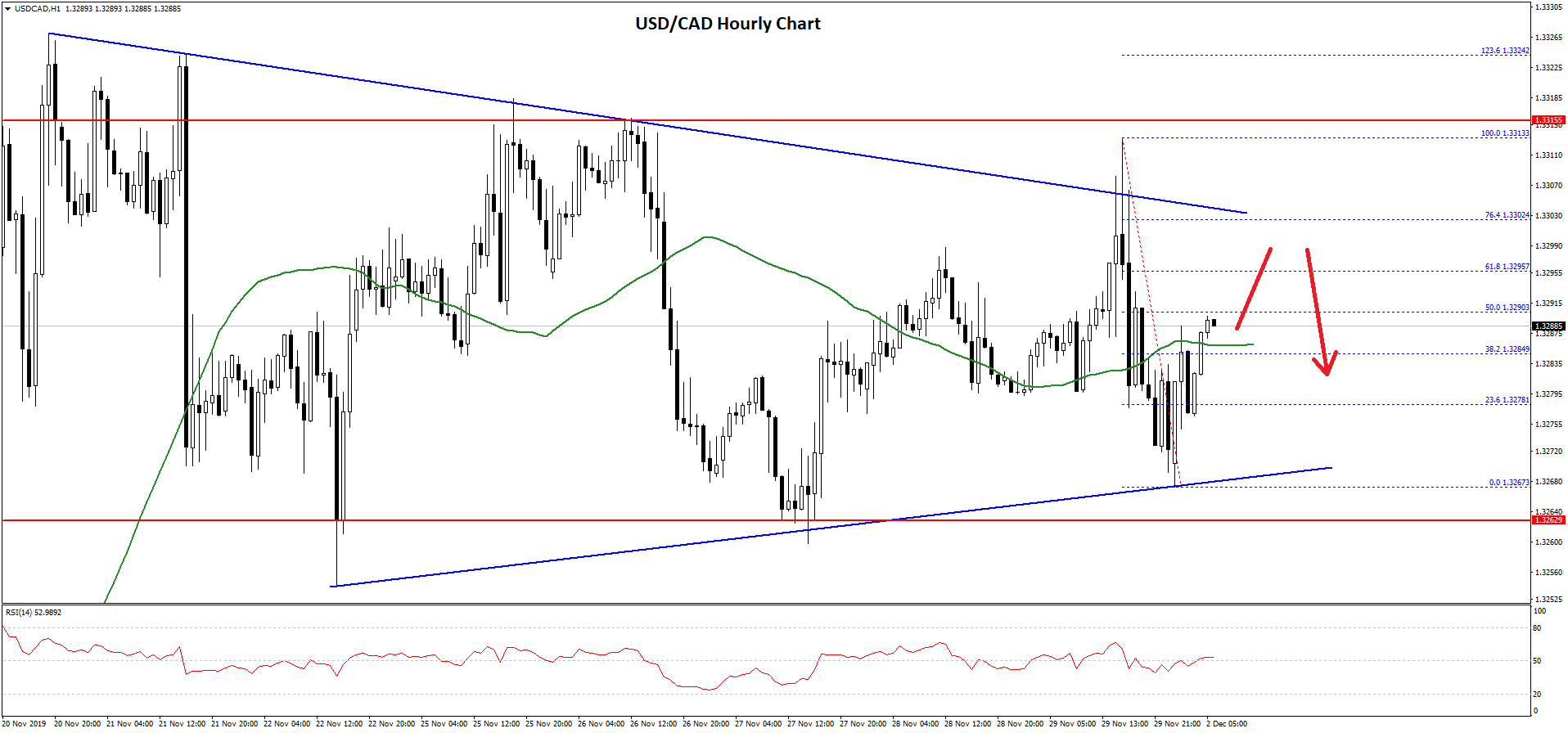 On the upside, there are many resistances near the 1.3295 and 1.3300 levels. Additionally, there is a crucial bearish trend line forming with resistance near 1.3305 on the hourly chart.