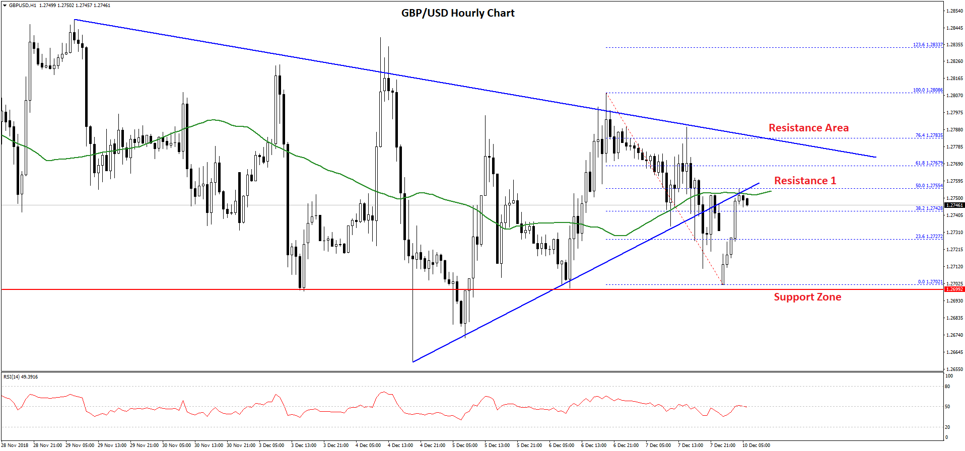 However, the pair failed to clear the 1.2755 level and the 50 hourly SMA. More importantly, the 50% Fib retracement level of the recent decline from the 1.2808 high to 1.2702 low acted as a solid barrier for buyers.