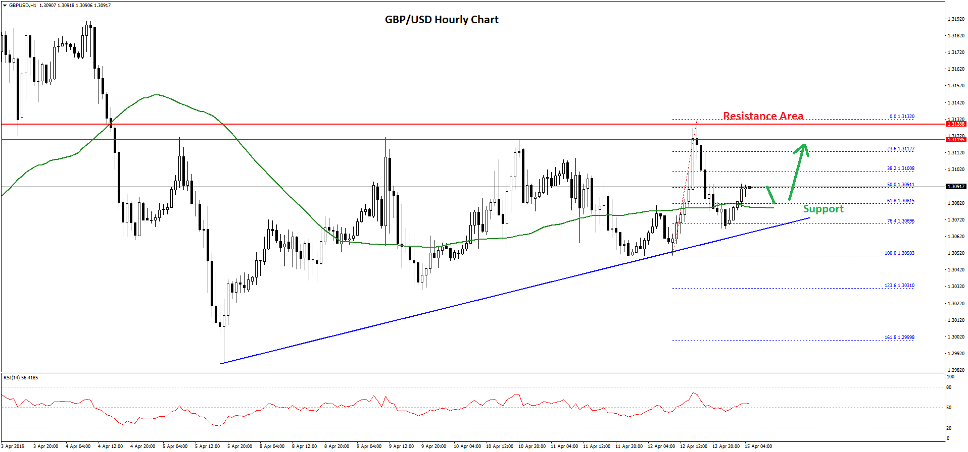 A swing low was formed near 1.3000 on FXOpen and later the pair started a decent recovery. There was a break above the 1.3080 resistance and the 50 hourly simple moving average. The pair even moved above the 1.3100 level, but it faced a strong resistance near the 1.3130 level.