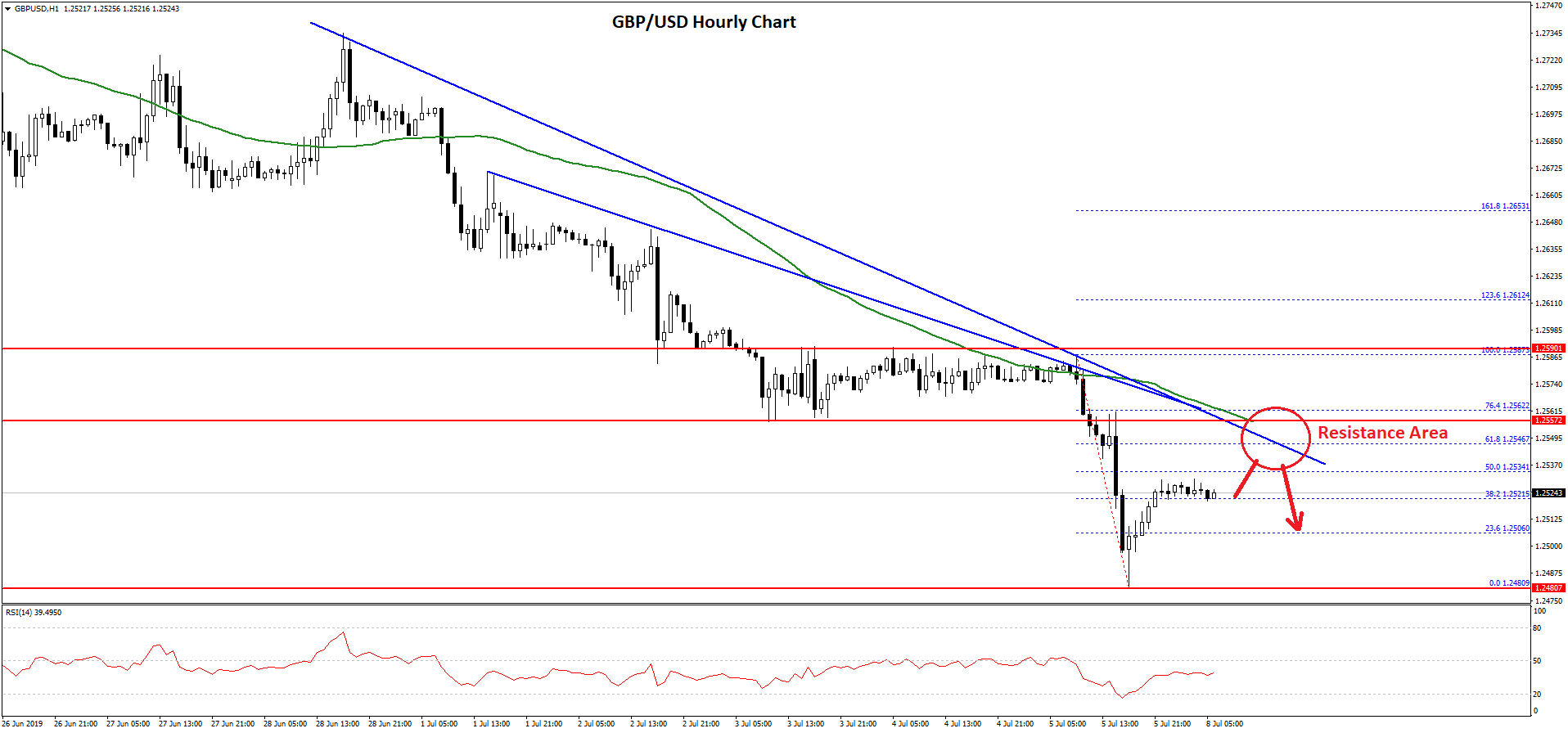However, there are many resistances on the upside near 1.2540 and 1.2550 levels. Moreover, there is a major bearish trend line forming with resistance near 1.2560 on the hourly chart of GBP/USD.