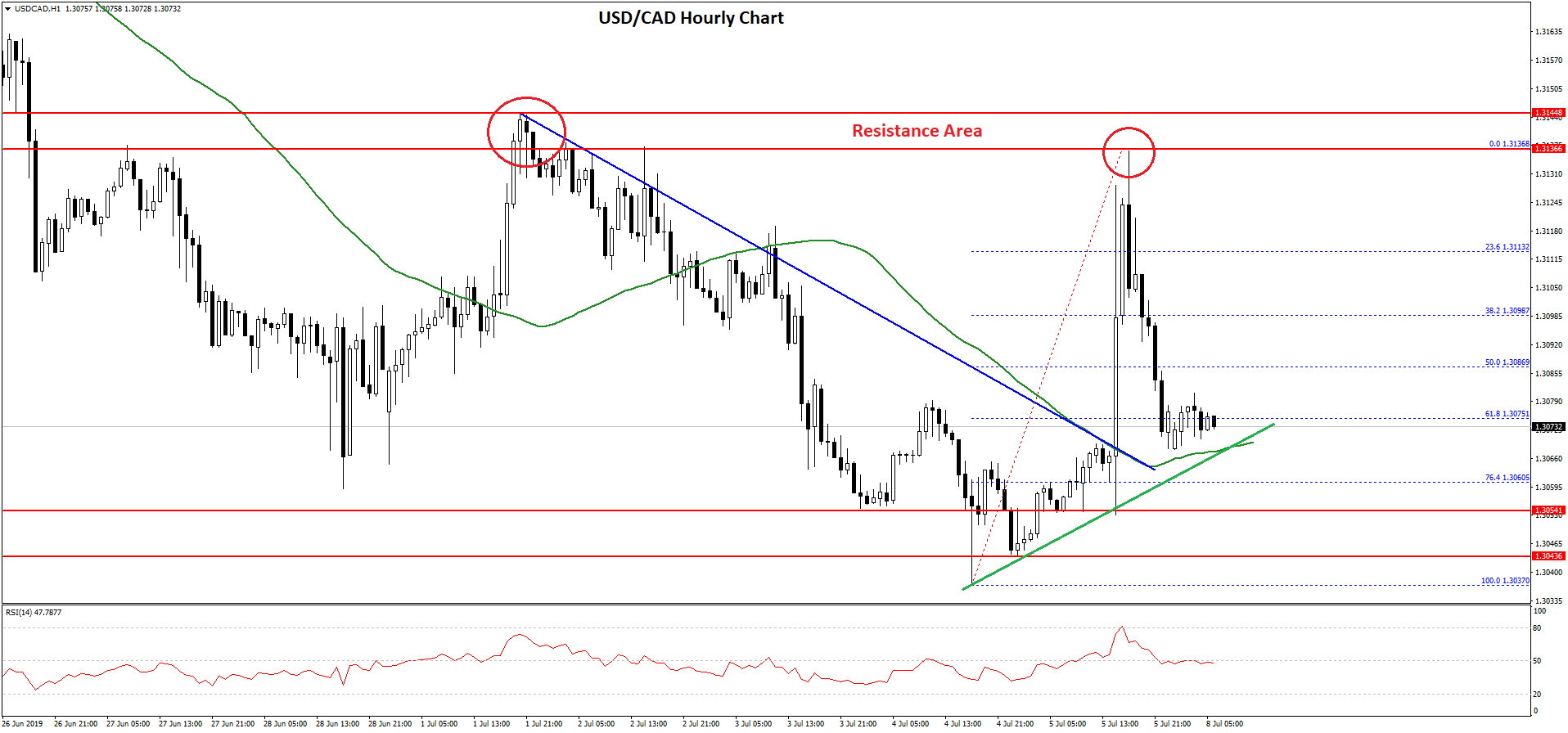 If there is a downside break below the 1.3060 support plus the 50 hourly simple moving average, there could be a sharp decline in the near term. The next key support is near the 1.3040 and 1.3020 levels.