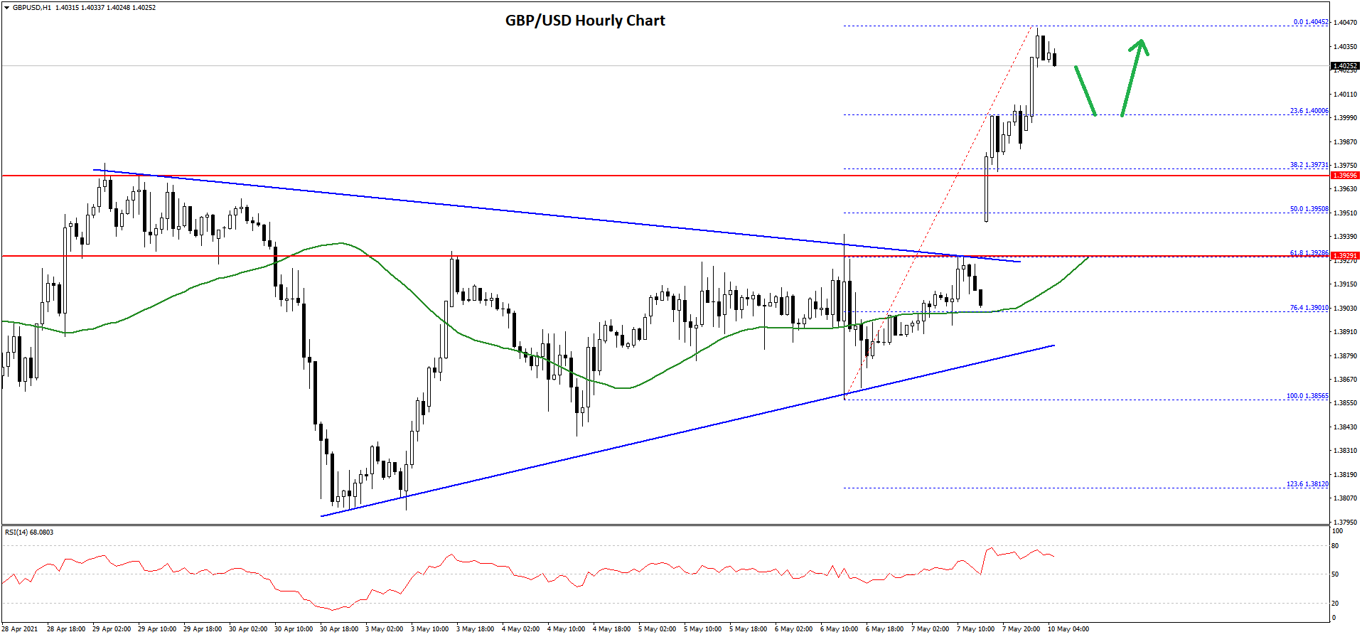 The pair even climbed above the 1.4000 level and settled nicely above the 50 hourly simple moving average. It traded as high as 1.4045 on FXOpen and it is now consolidating gains.