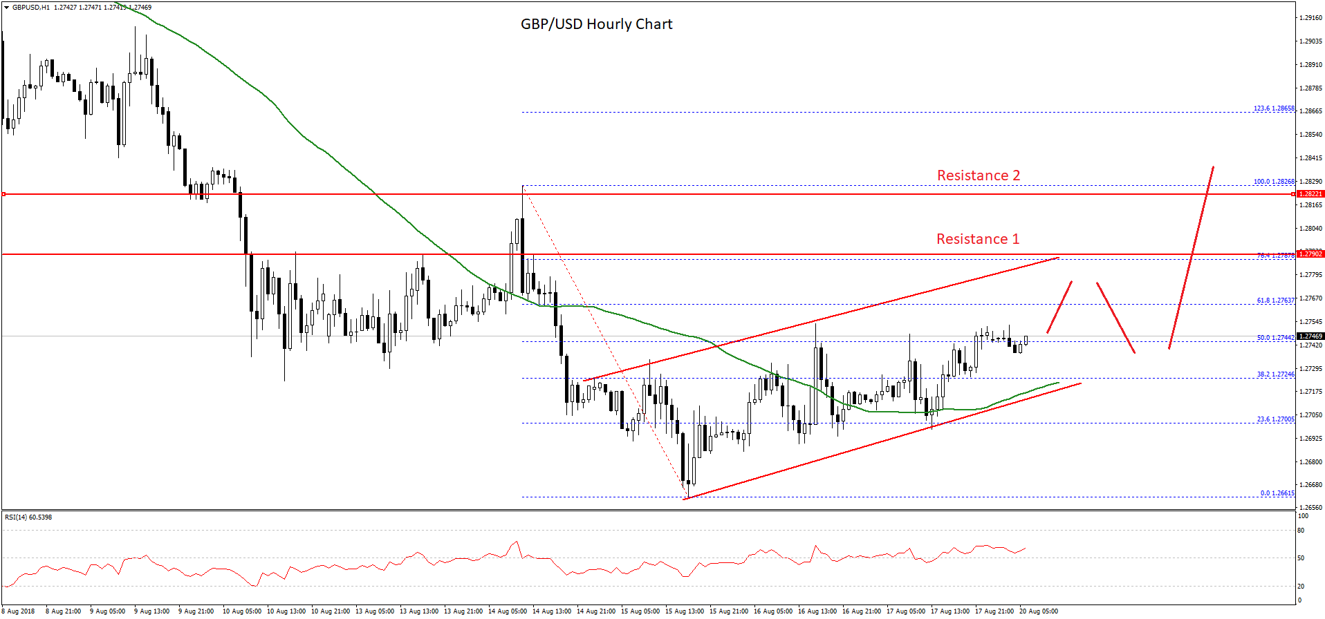 The pair found a strong buying interest above the 1.2660, resulting in the start of an upward move. There was a decent correction as the pair moved above the 1.2700 resistance and the 50 hourly simple moving average.