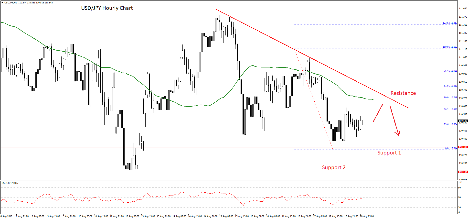 The decline was such that the pair also broke the 110.80 support and settled below the 50 hourly simple moving average. There was a test of the 110.30 support area before the pair started consolidating losses.