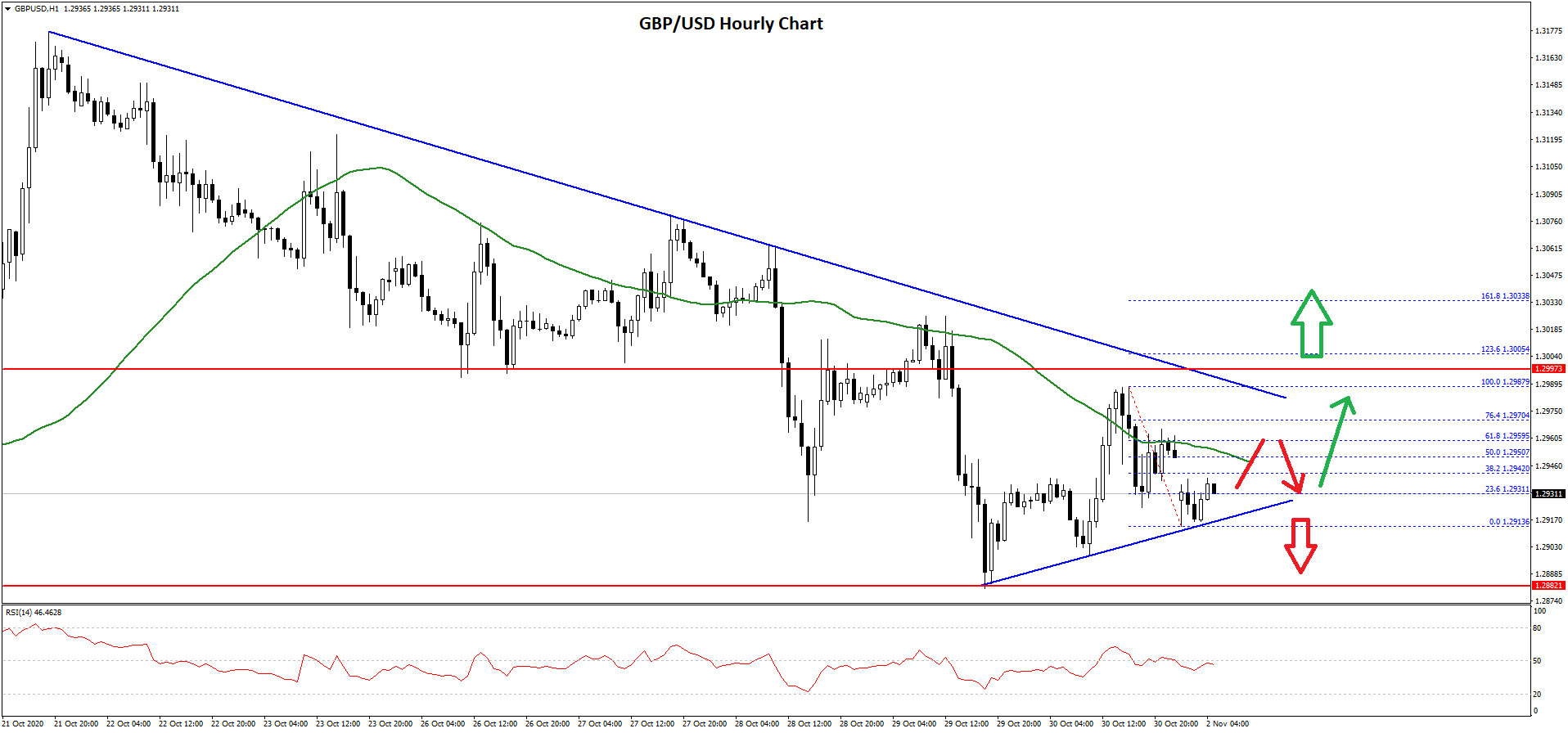 The pair even broke the 1.3000 support and settled below the 50 hourly simple moving average. Finally, there was a spike below the 1.2900 support and a low was formed near the 1.2880 level.