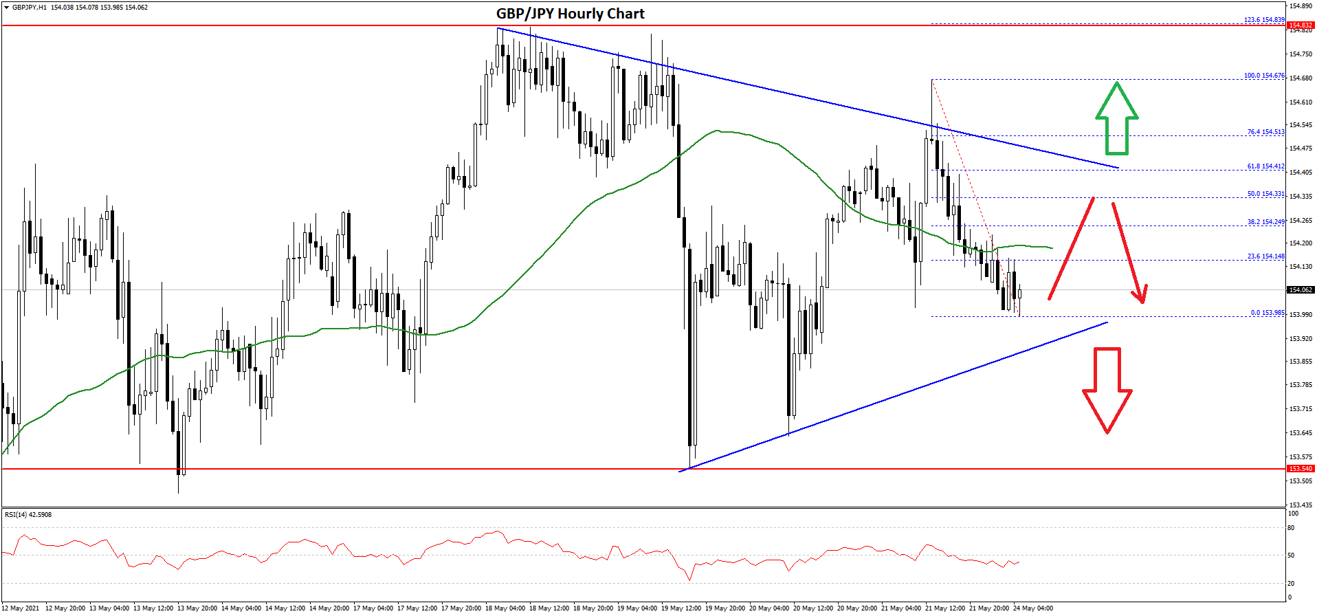 The last swing high was formed near 154.67 before the pair dipped below 154.50. There was also a break below the 154.20 and the 50 hourly simple moving average. It traded as low as 153.98 and it is now consolidating.