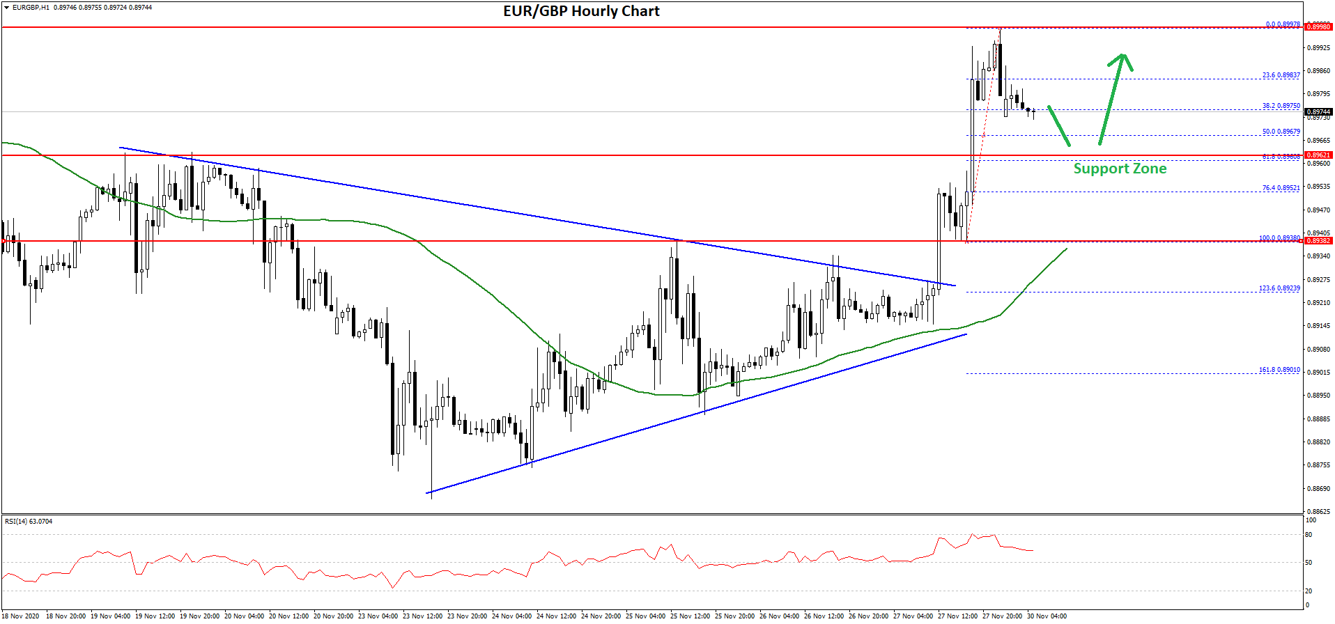The upward move gained pace above the 0.8950 resistance and the 50 hourly simple moving average. There was also a break above a major contracting triangle with resistance near 0.0.8925 on the hourly chart.