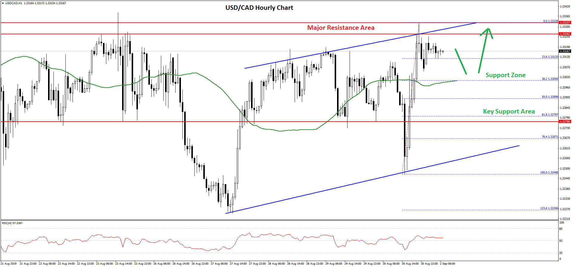 Recently, there was a break above the 1.3300 resistance and the 50 hourly simple moving average. However, the pair is still struggling to break the key 1.3330 and 1.3340 resistance levels.