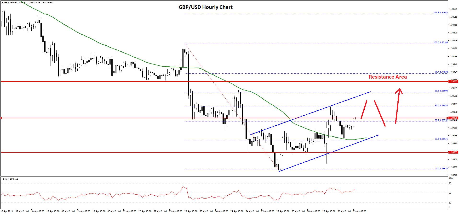 On the upside, there is a strong resistance near the 1.2940 and 1.2950 levels. A successful close above the 1.2950 level may push the pair towards the 1.3000 and 1.3020 levels. On the downside, an immediate support is at 1.2920, followed by the channel support.
