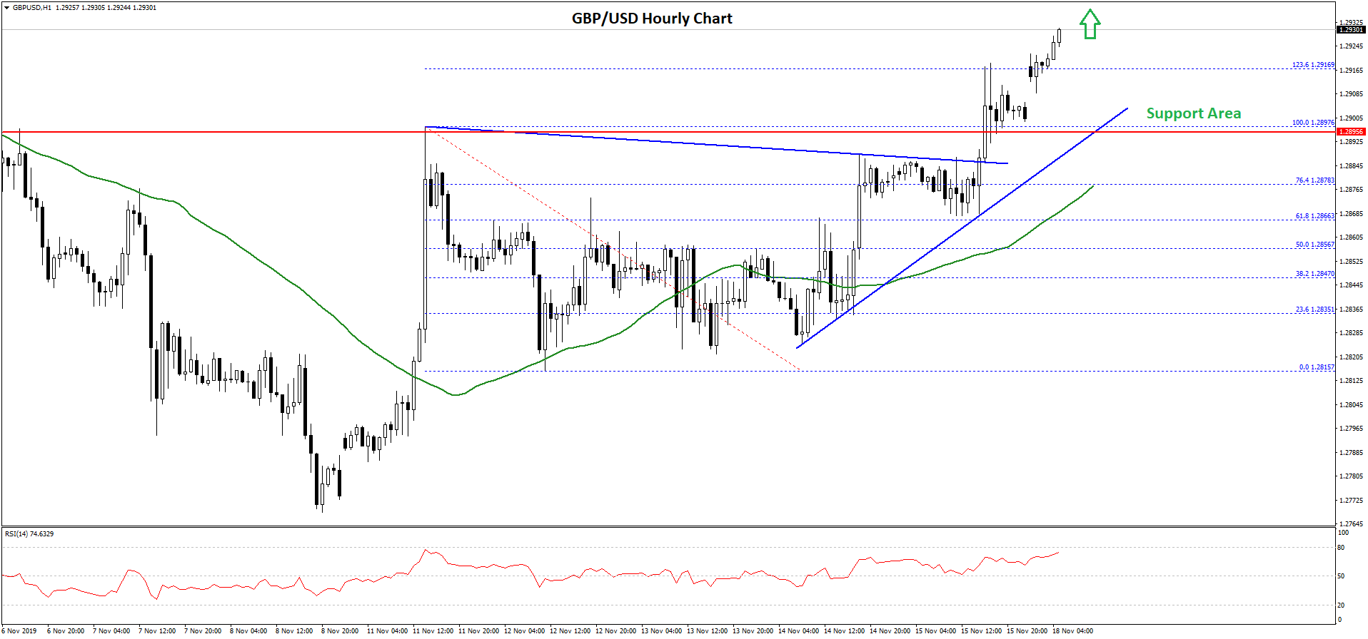 It opened the doors for more gains and the pair is likely to rise further towards the 1.2950 and 1.2960 resistance levels. The first key resistance is near the 1.2950 level.