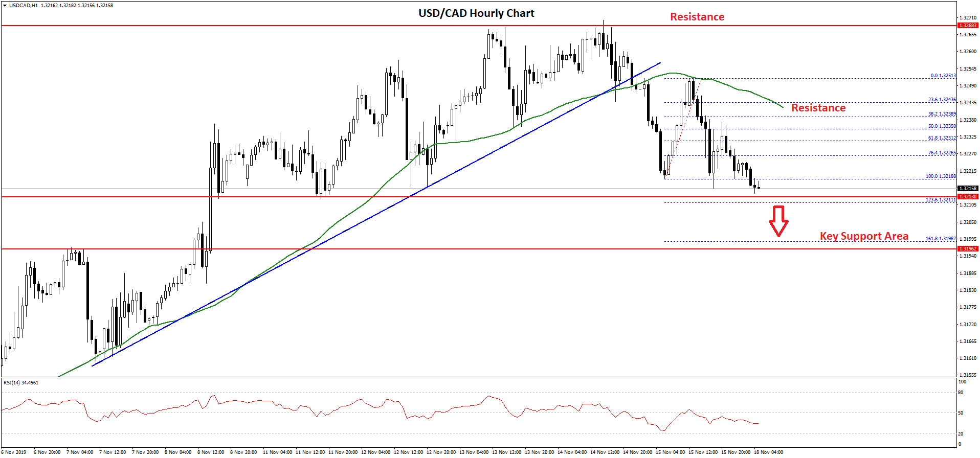 The pair even broke the 1.3240 support and the 50 hourly simple moving average. It is now trading near the last swing low at 1.3218. An immediate support is near the 1.3210 level.