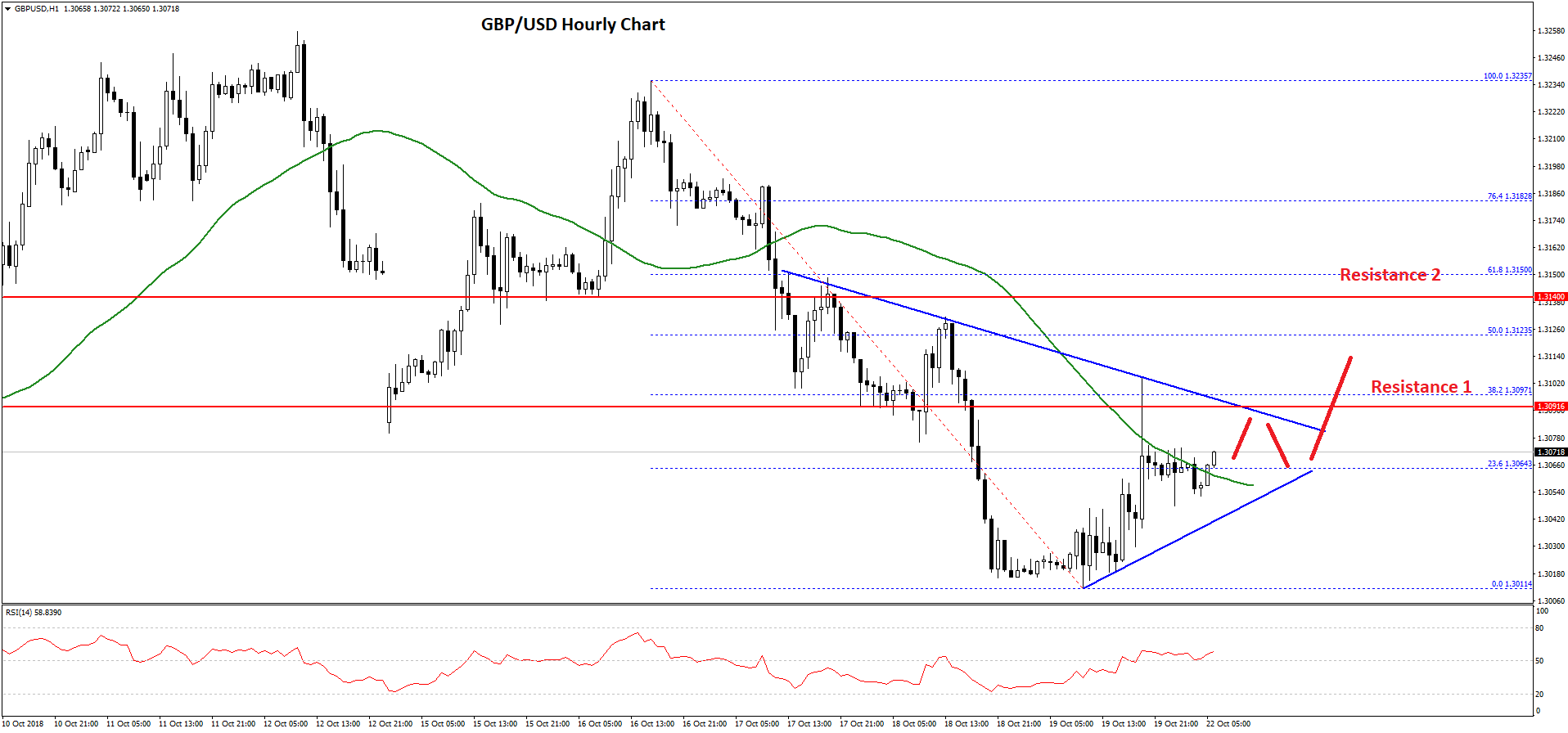 However, there is a strong resistance formed near the 1.3100 level. Moreover, there is a major bearish trend line in place with resistance near 1.3090 on the hourly chart.