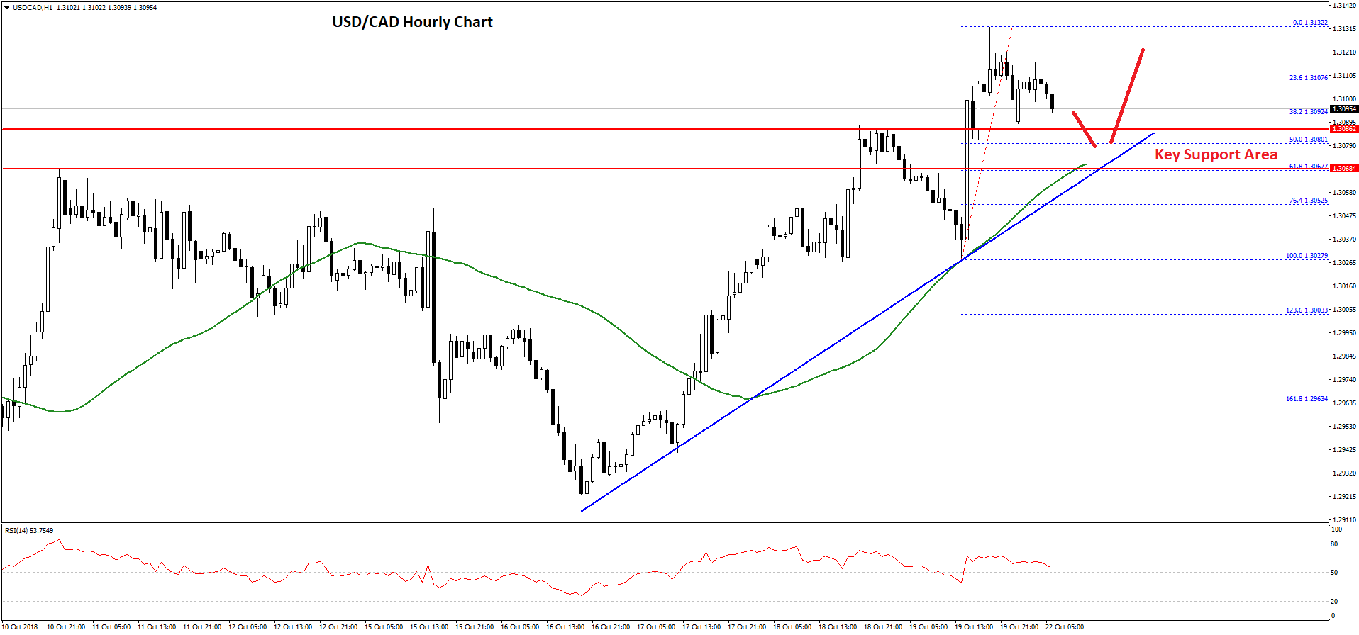 GBP/USD declined recently and tested the 1.3010 support before recovering. USD/CAD is currently correcting lower, but dips remain supported near 1.3070.