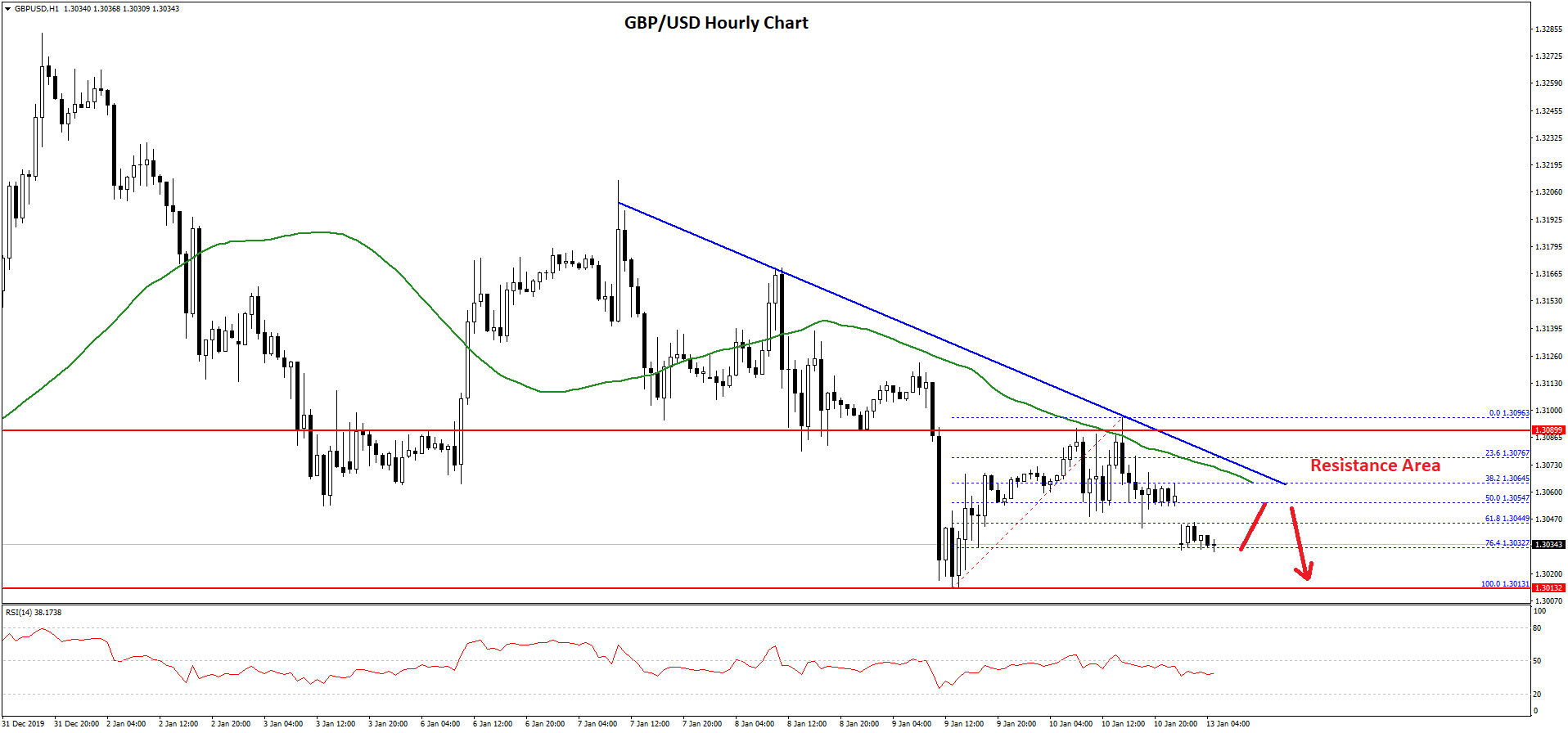 On the upside, there are many hurdles for the bulls near the 1.3060 and 1.3070 levels. Moreover, there is a key bearish trend line forming with resistance near 1.3065 on the hourly chart of GBP/USD.