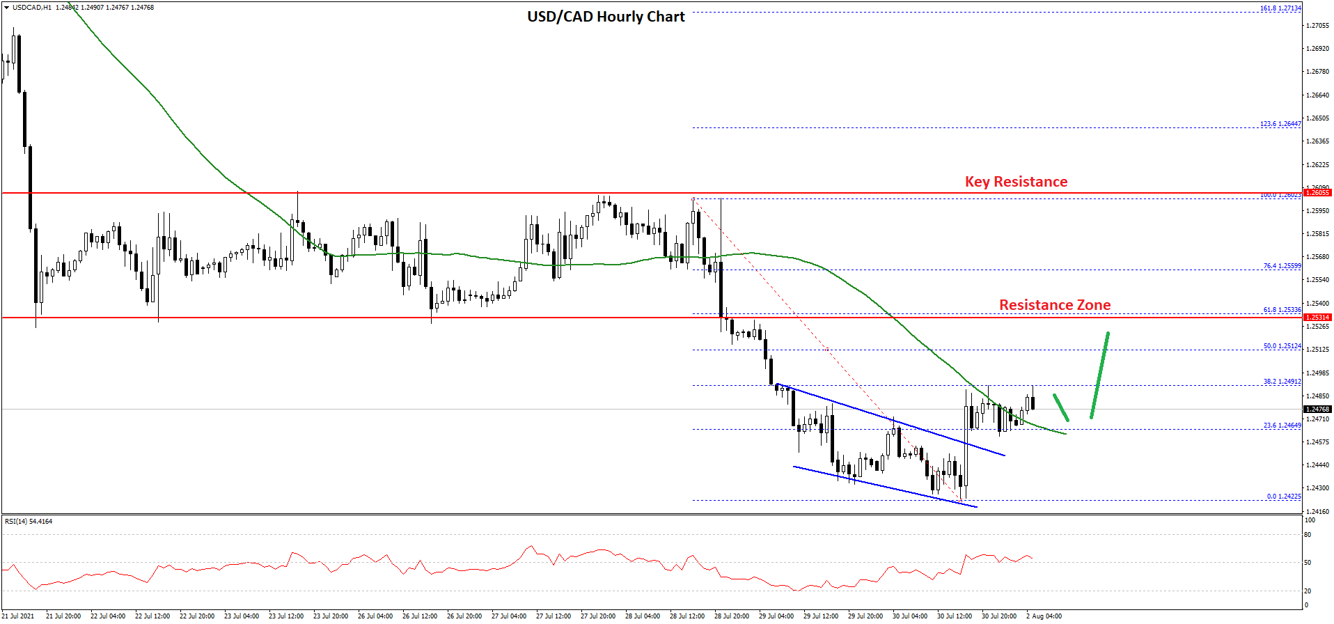 The pair is now trading above the 1.2470 level and the 50 hourly simple moving average. An immediate resistance is near the 1.2490 level. The first major resistance is near the 1.2512 level.