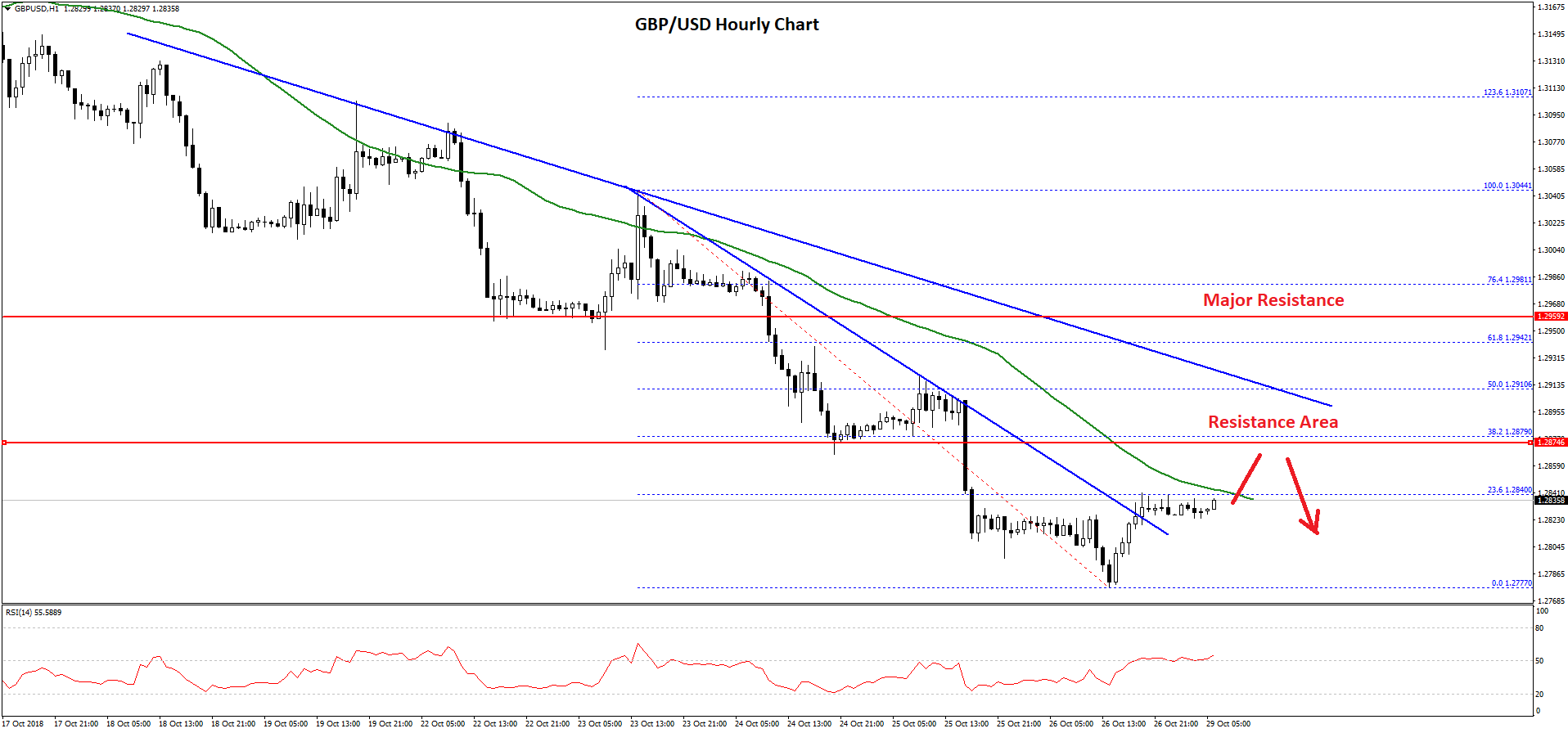 If there is a break above the 1.2845 level and the 50 hourly simple moving average, there could be more gains towards the 1.2880 level, which is a strong resistance.