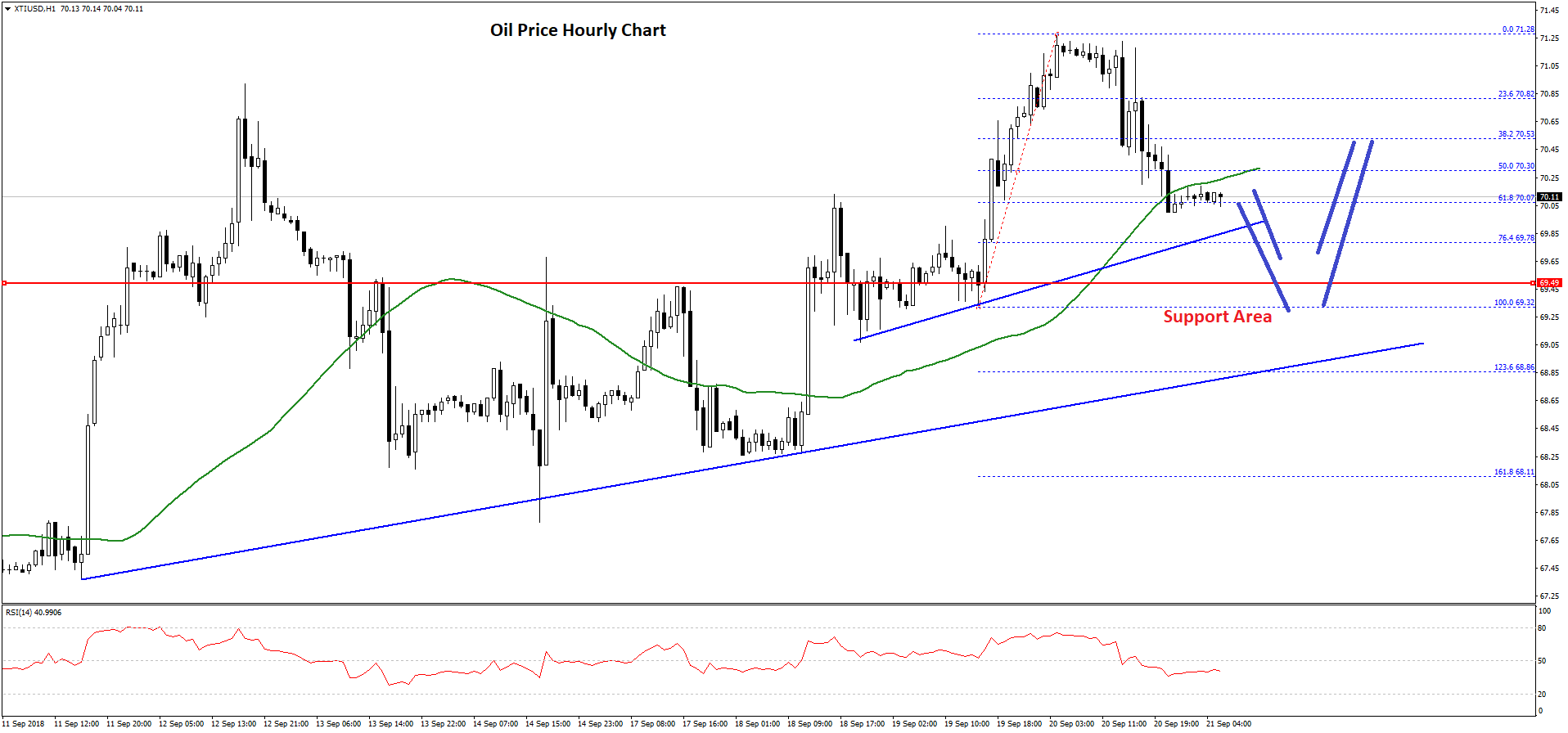 Moreover, there was a close below the $70.50 support and the 50 hourly simple moving average. However, there are many supports on the downside above the $69.50 level. There are also two bullish trend lines in place with support at $70.00 and $69.20 on the hourly chart of XTI/USD.