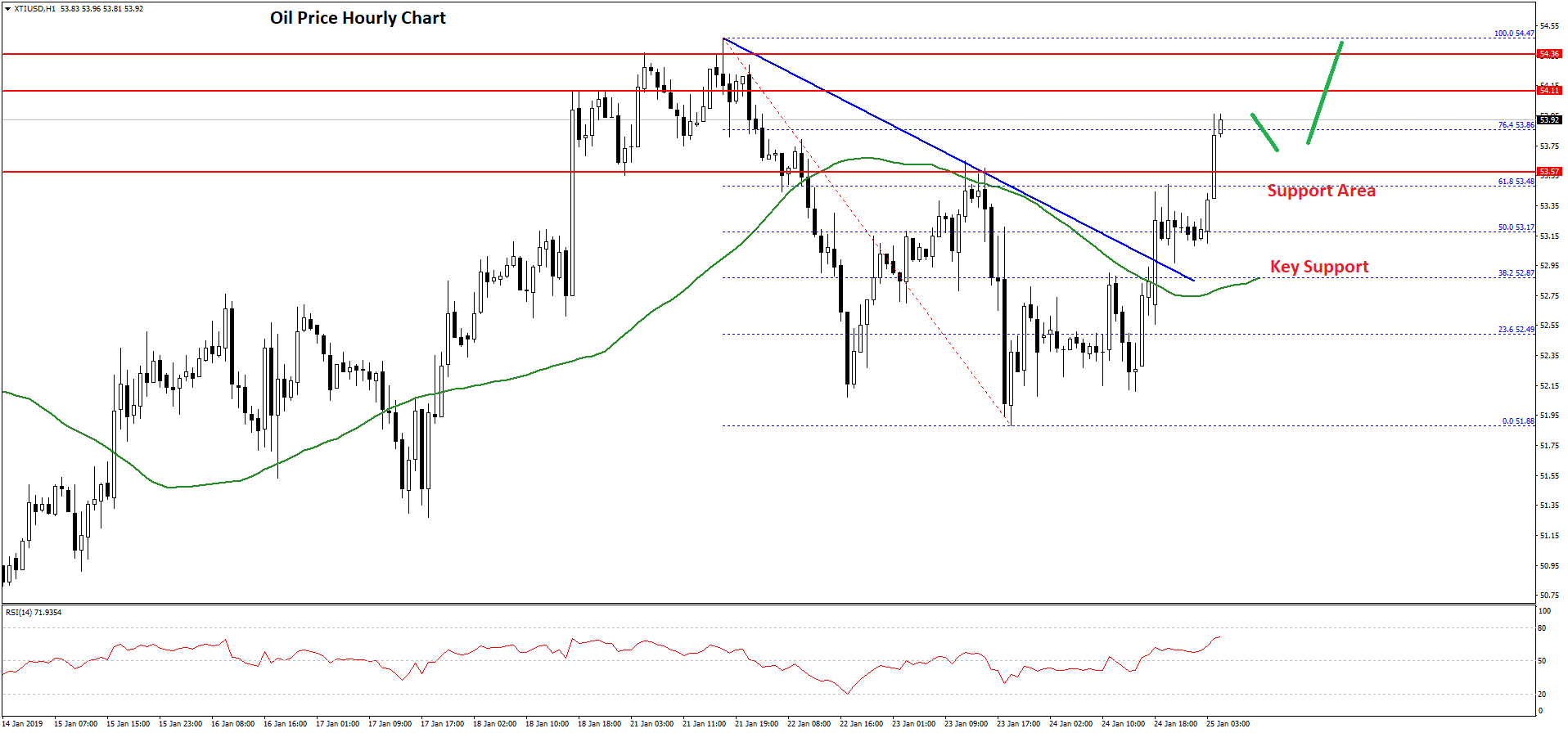 Therefore, there are high chances of more gains above the $54.00 and $54.20 levels in the near term. If there is an upside break above $54.50, the price may even test the $55.00 level.