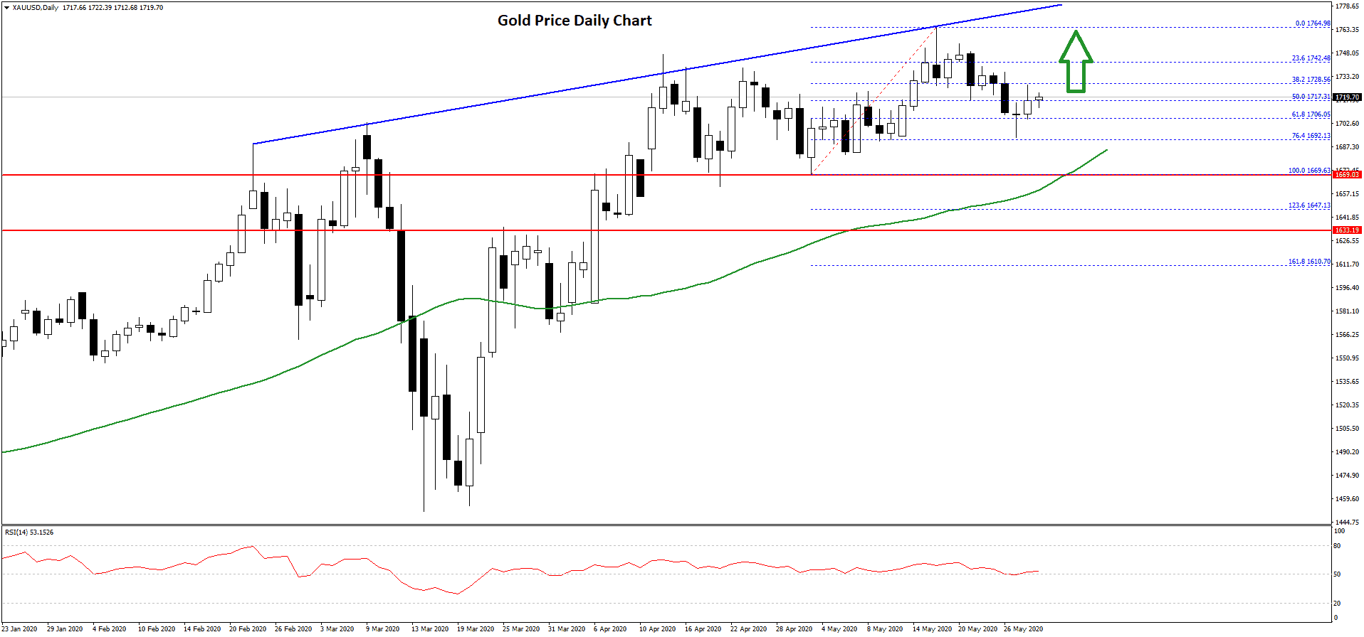 Gold price remained in a bullish zone above the $1,700 resistance zone against the US Dollar. There was a clear break above the $1,725 and $1,750 resistance levels.