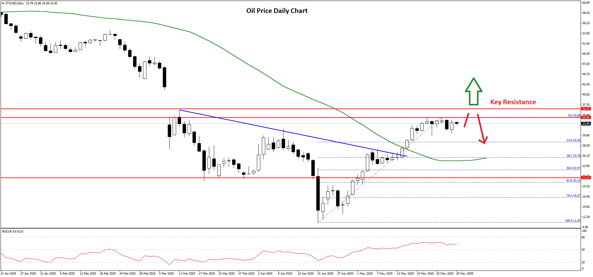 Gold price remained in a strong uptrend and traded above the $1,750 level before correcting lower. Similarly, crude oil price started a strong increase and climbed above $30.00.