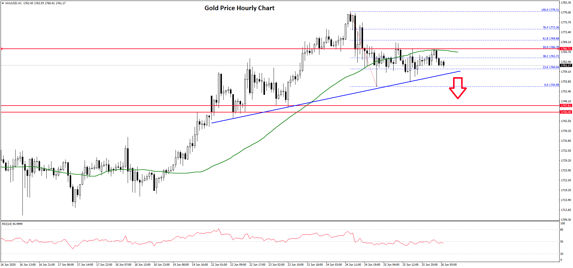 The next major hurdle is at $1,780, followed by $1,788. Conversely, the price could break the trend line support at $1,758 and start a fresh decline. The main support is near the $1,748 zone, below which gold price might start a substantial drop in the coming days.
