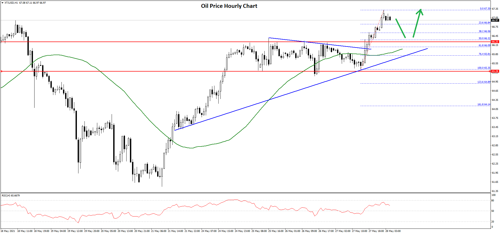 The price was able to surpass the $64.50 and $65.00 resistance levels. There was also a break above the $66.40 resistance and the 50 hourly simple moving average. A high is formed near $67.30 and the price is now consolidating gains.