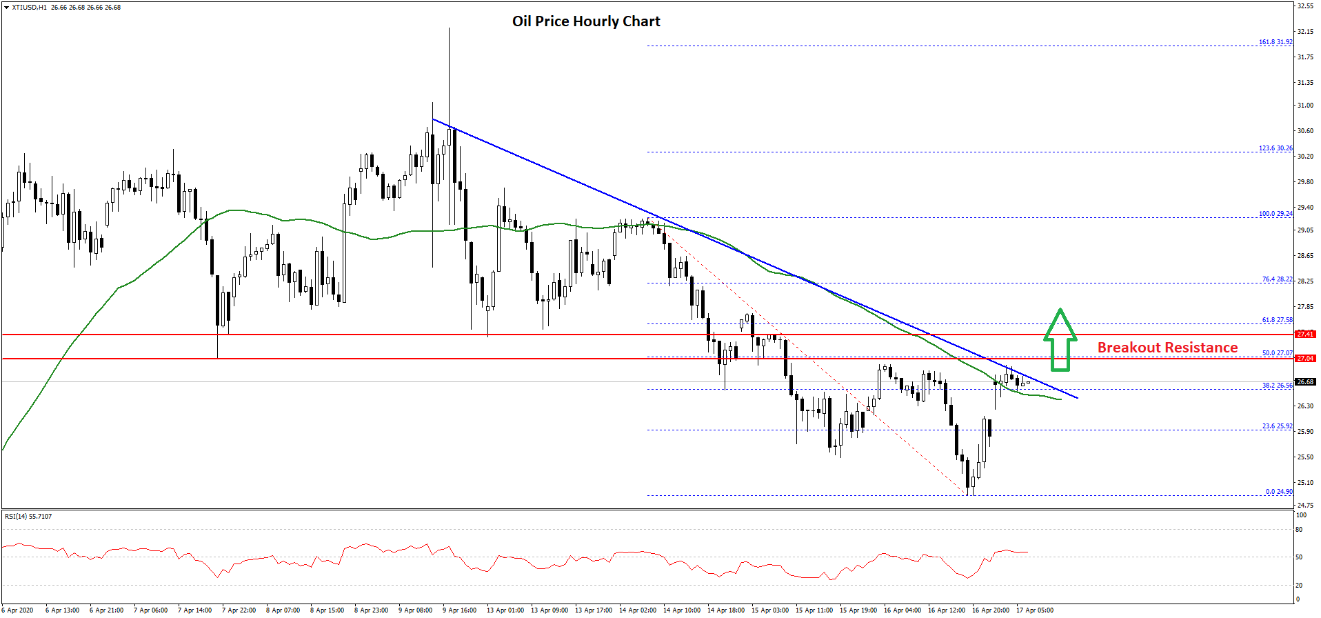 Crude oil price remained in a bearish zone and traded below the $27.00 support against the US Dollar. The price even broke the $25.00 support and traded as low as $24.90.