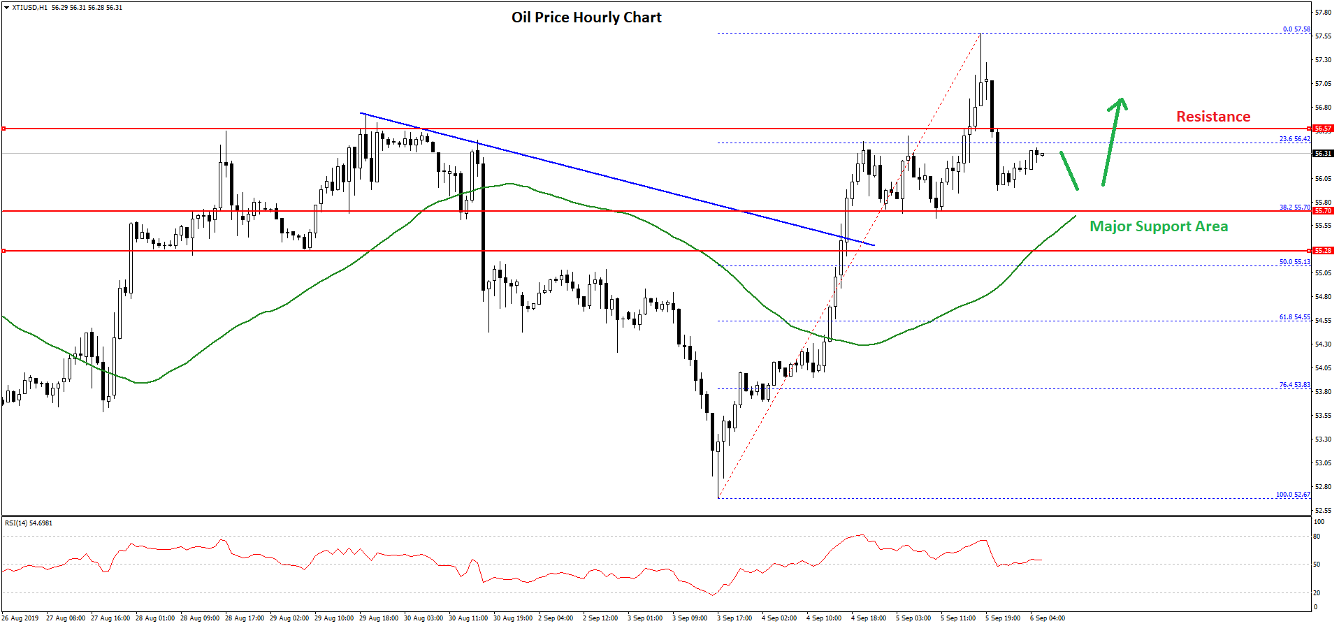 Moreover, there was a close above the $55.00 pivot level and the 50 hourly simple moving average. There was a break above a major bearish trend line with resistance near $55.55 on the hourly chart of XTI/USD.