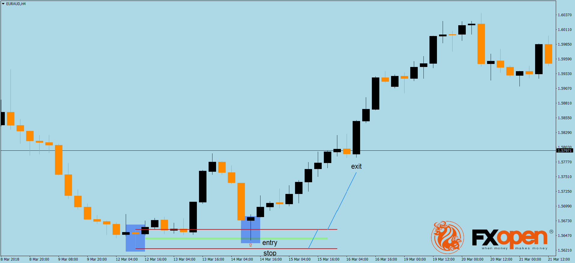 More importantly, the lower shadow must exceed at least two times the real body’s size. Hence, before jumping to conclusion and judging a candlestick as a hammer, make sure you measure the real body’s length and check that the lower shadow is longer than two times the result. Just like the chart below shows!