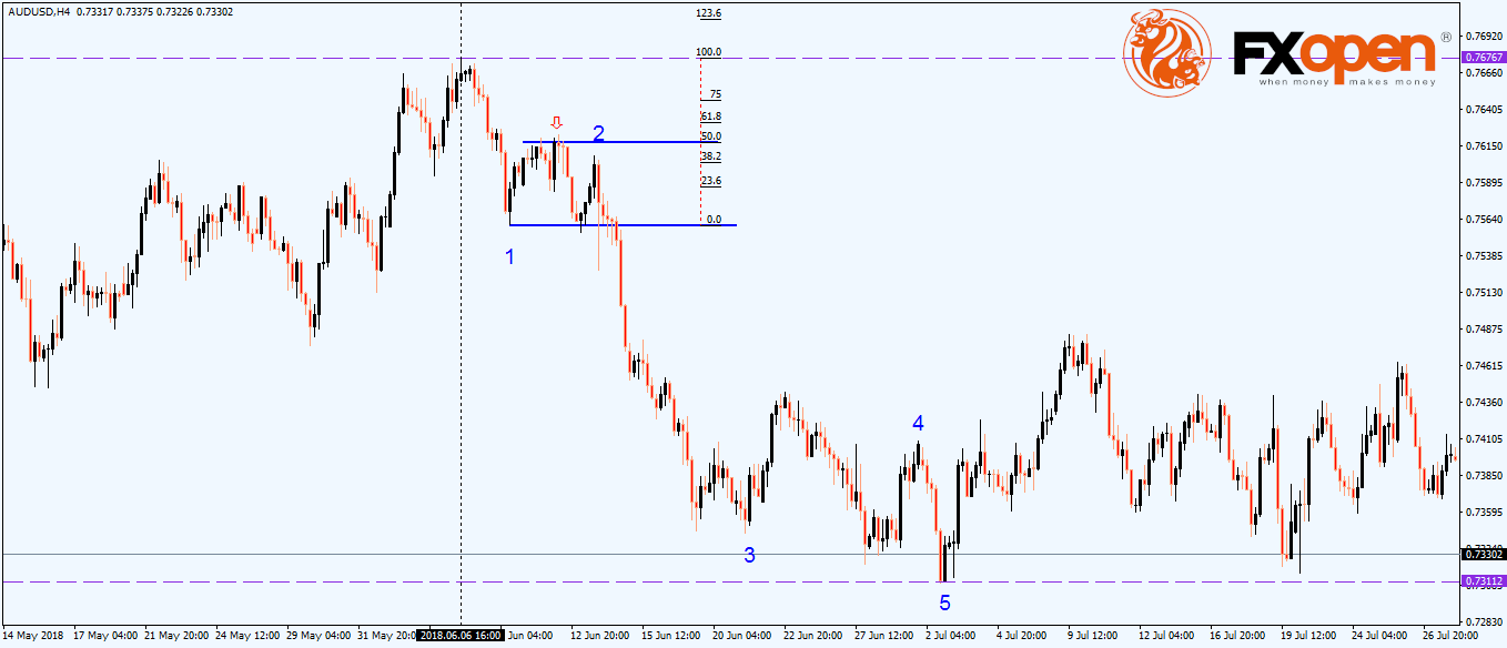 Typically, the second wave retraces somewhere between 50% and 61.8% of the first wave. This is the place where traders in search of the third wave enter the market, placing a stop-loss at the start of the first wave and targeting the extended wave.