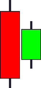 This is how standard inside bar is called, where the range of the candle is small and is overlapped by the previous candle. This inside bar pattern suggests that the market is dominated by low volatility and indecision.