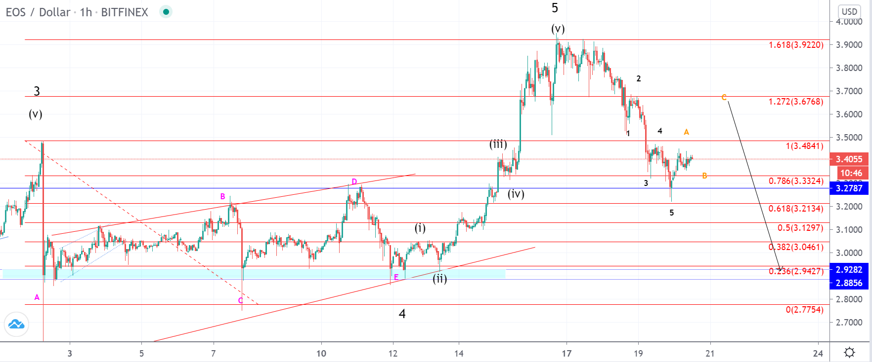 The price of EOS has been decreasing from Monday’s high at $3.922 to $3.27 which was a decrease of 16.31% but made a recovery since and is currently trading at around $3.4.