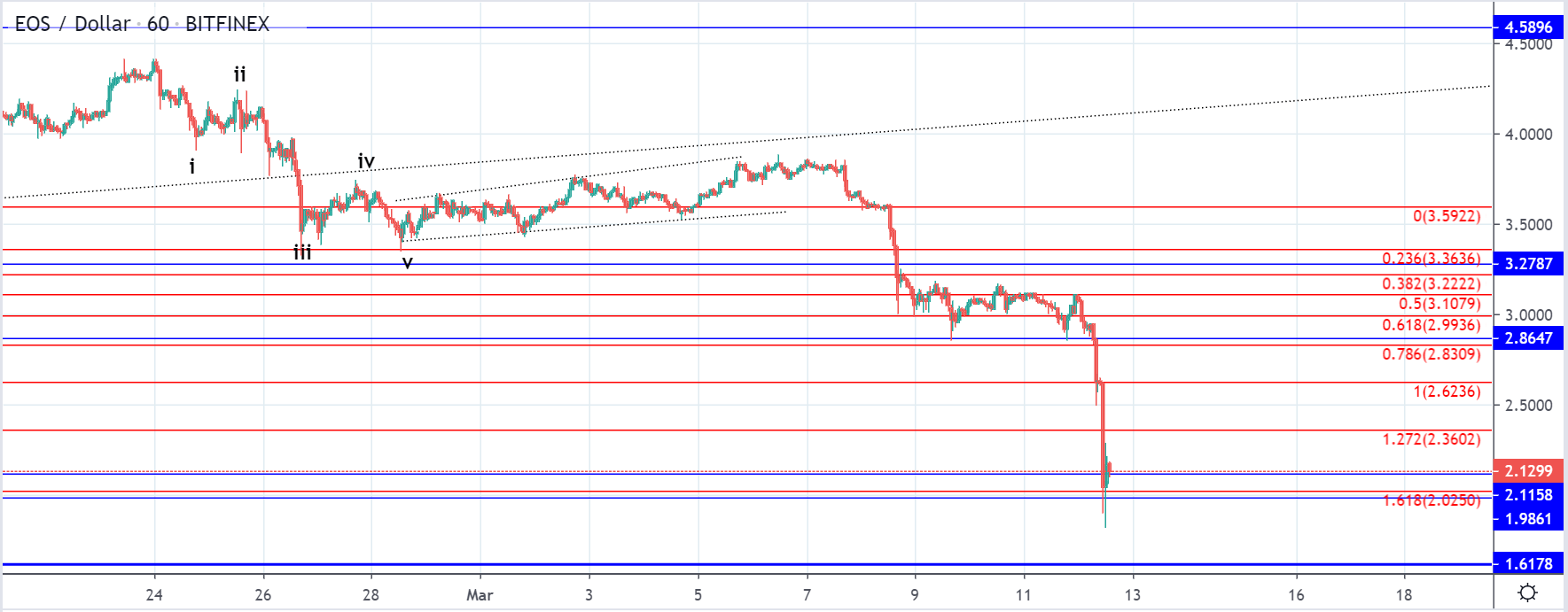 Similarly like in the case of Litecoin, the price of EOS has also made a significant decrease today, coming from $3.1 at the open to $1.9 at it’s lowest which is a decrease of 38.61%.