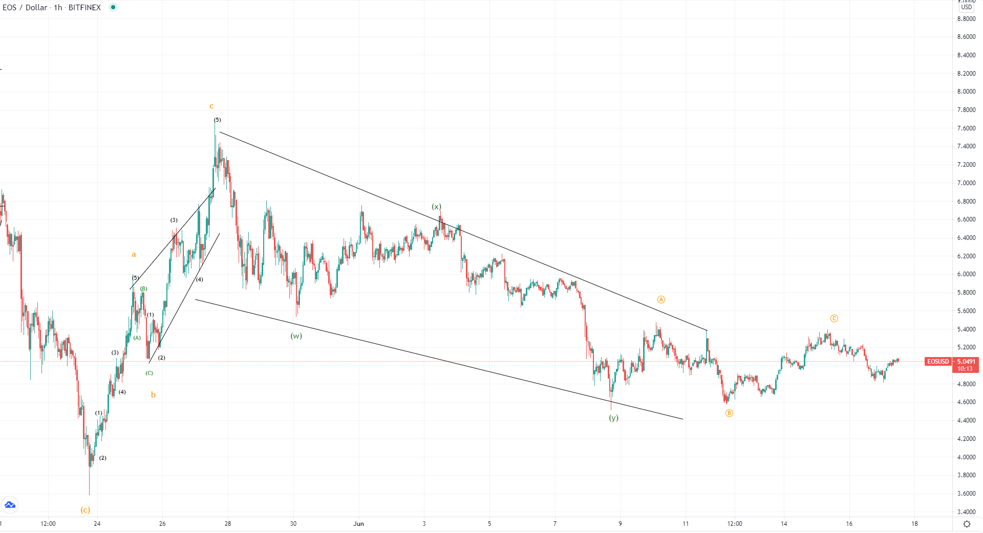The same applies to the chart of EOS as on the chart of Litecoin. We could have seen the start of another move to the upside, but there is still a possibility that from the 8th we have seen another ABC correction to the upside before another downfall.