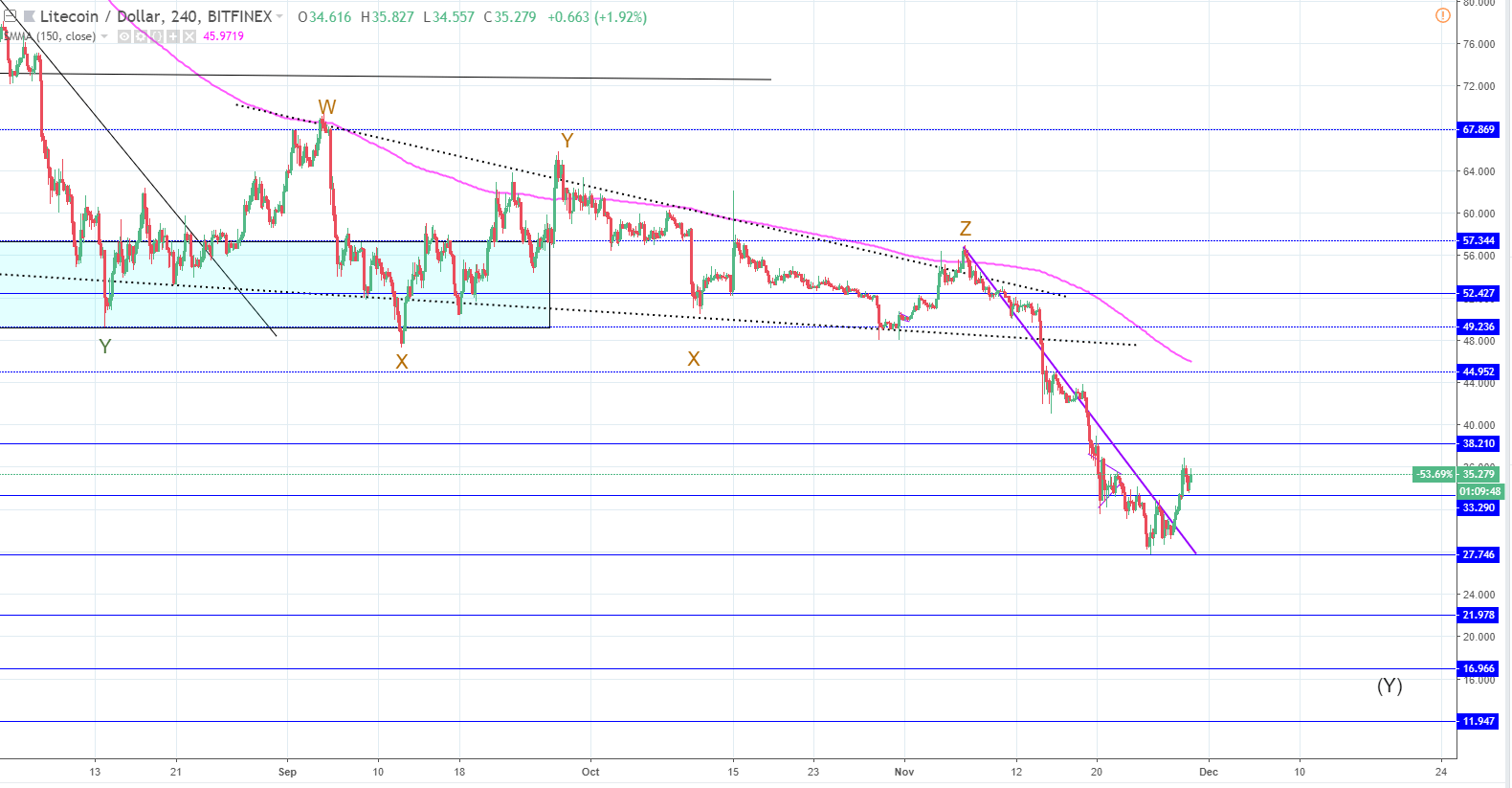 Zooming out to the 4-hour chart, you can see that the decrease in the price of Litecoin started on 6th of November when minor Z wave ended at $56.58.