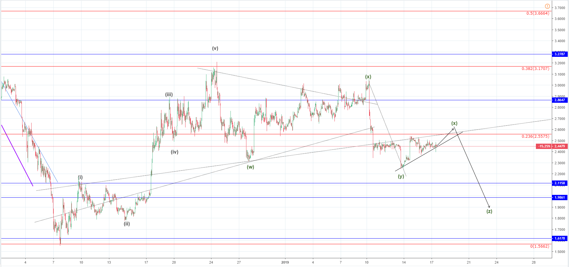 The target for the expected minor increase would be around the 0.236 Fibonacci level or at where the most significant resistance is. After it ends the wave Z should start, which will lead the price down and the first target for its ending point would be on the next horizontal support area from $2.11-$1.94.