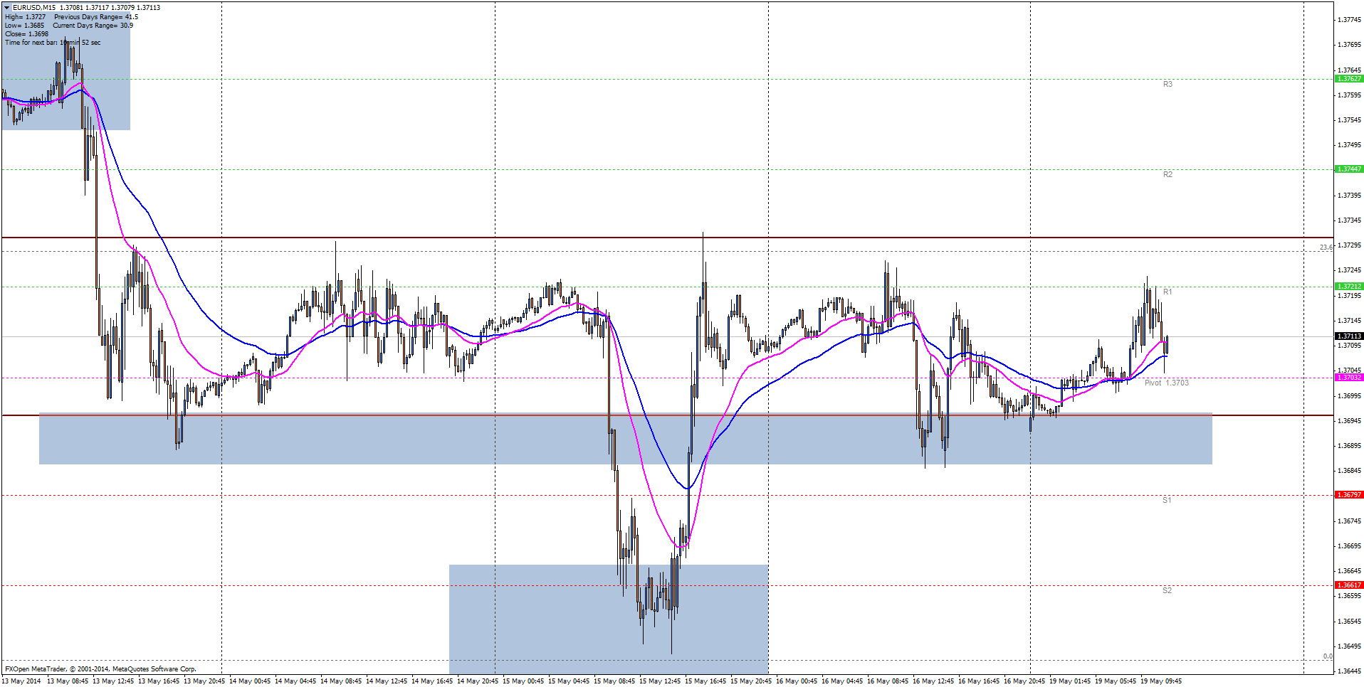 After big drop from 1.4000 two weeks ago, pair hit 1.3650 last Thursday where it found plenty of buyers. Demand was strong enough to lift price into 1.3690 – 1.3730 range and keep it there till end of last week. After 350 pips fall, markets are starting to speculate about possible retracement but concerns about possible monetary easing from ECB would probably keep price capped until bank’s decision on June 5th.