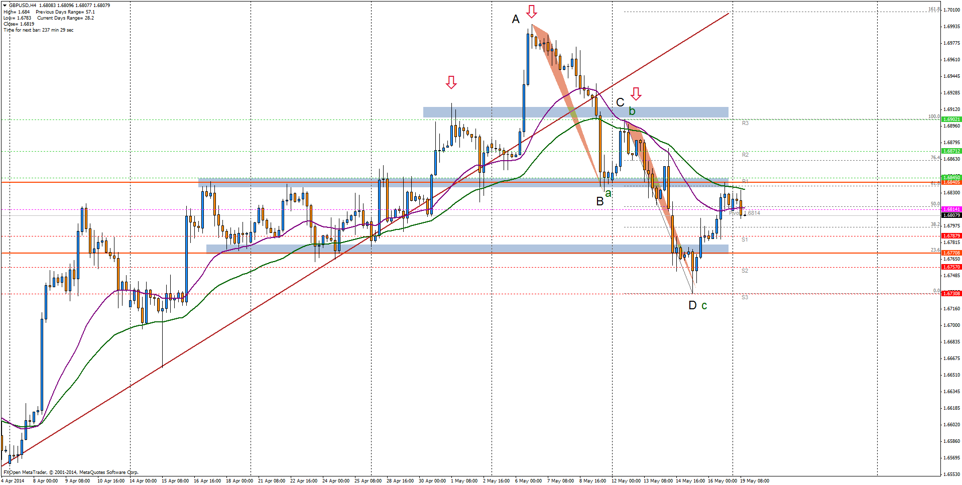 - 1.6730 – 1.6700 – strong demand area from April, Daily Moving Average for 55 periods.