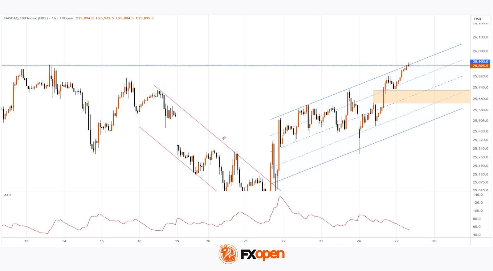 As the chart shows, the Nasdaq 100 index (US Tech 100 mini on FXOpen) climbed today to its highest level since early November, rising above 25,900. Since the start of the week, the index has gained around 1.8%. This appears to reflect a shift in market sentiment: