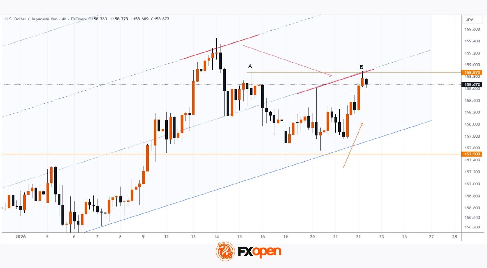 In late December, when analysing movements in the dollar–yen exchange rate, we identified a long-term ascending channel that remains valid (with a slight adjustment to reflect January data).