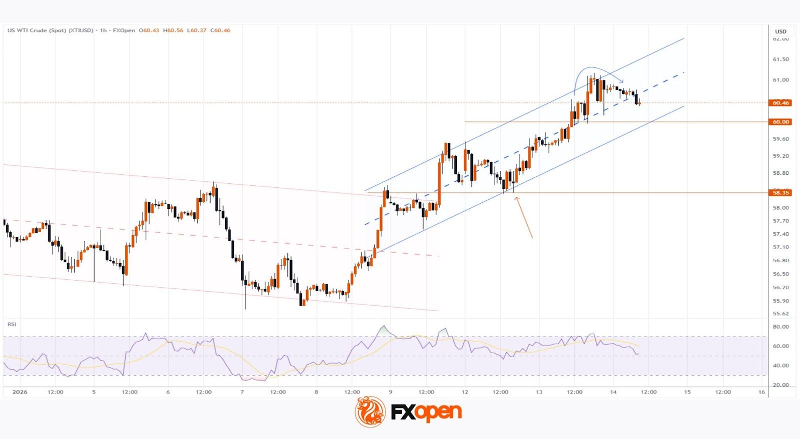 As the XTI/USD chart shows, the price of a barrel climbed above $60 this week, reaching a one-month high.